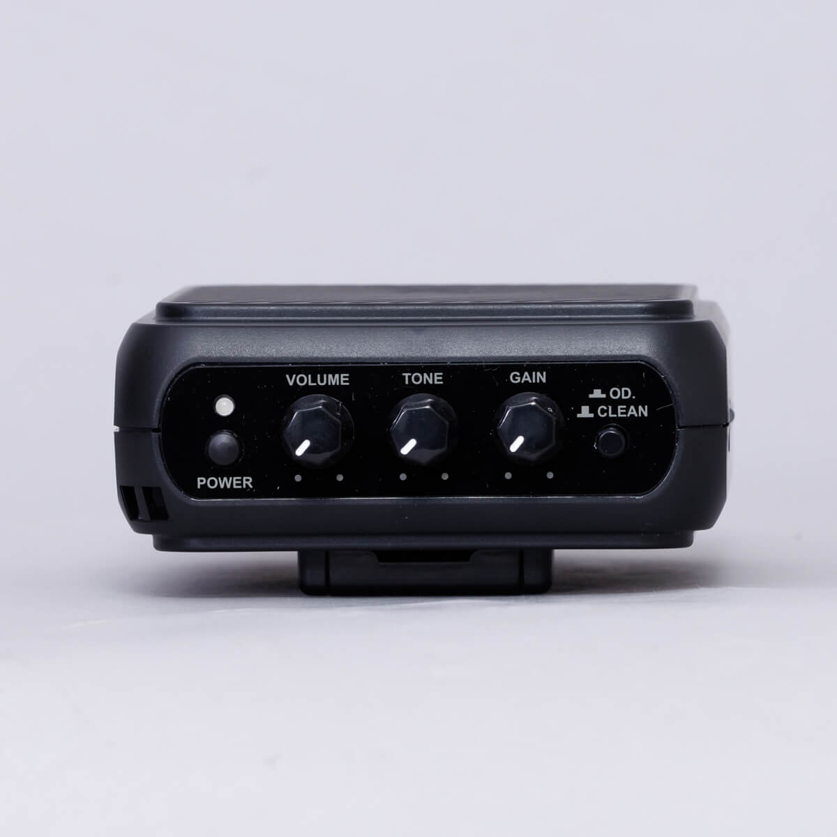 手軽で便利な充電式ミニアンプです。USB Type-Cで簡単に充電でき、約2時間で満充電。最大5時間の連続使用が可能なので、自宅はもちろん外出先でも安心して練習できます。小型・軽量設計に加え、キックバックスタンドやベルトクリップ付属で演奏スタイルも自由自在。ヘッドホンを使えば音を外に出さず静かに演奏できるのもポイントです。サウンドはクリーンとオーバードライブを切り替え可能。さらにゲインを調整すれば、軽いクランチからハードな歪みまで幅広く楽しめます。