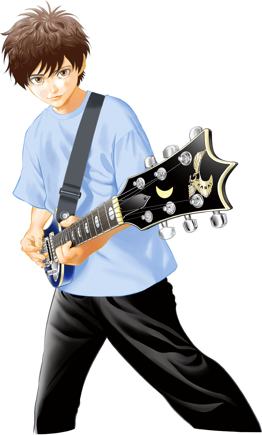 小学生の頃、初めて行ったライブに刺激を受けた新木友平は、中学になり音楽好きの友人・マタローと、三日月形の変てこなギターに出会う。