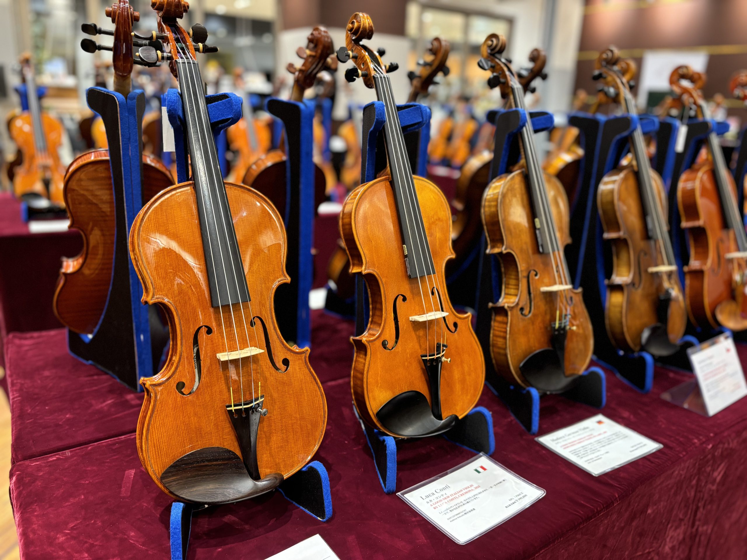 各会場では、弦楽器専門スタッフによるご案内と試奏他、お客様ご自身による、お手持ちの楽器との弾き比べもお楽しみいただけます。