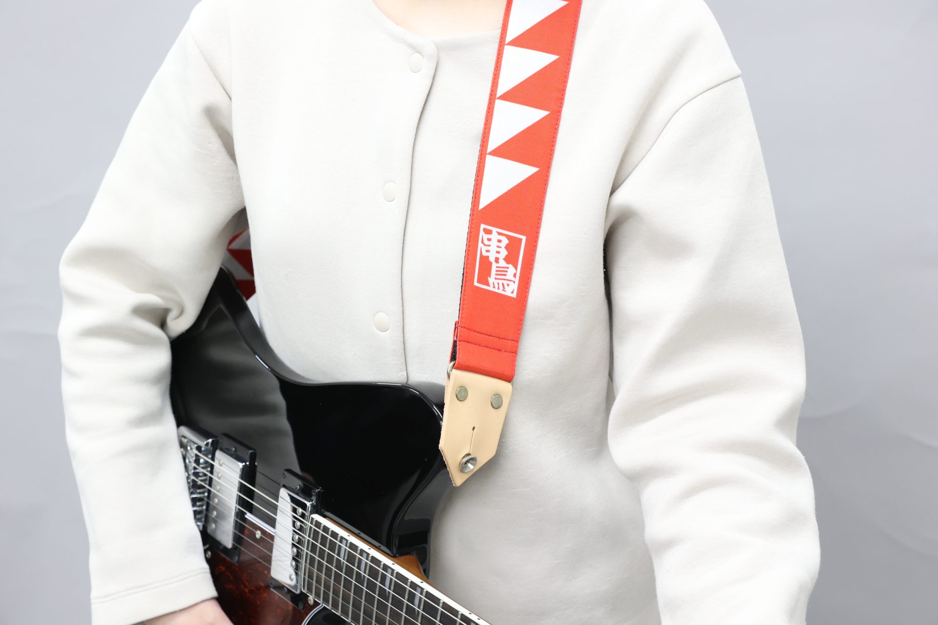 串鳥各店の外観でおなじみの紅白デザインと「串鳥」ロゴをあしらった、存在感抜群のギターストラップ。ステージ上でも目立つこと間違いなしです。