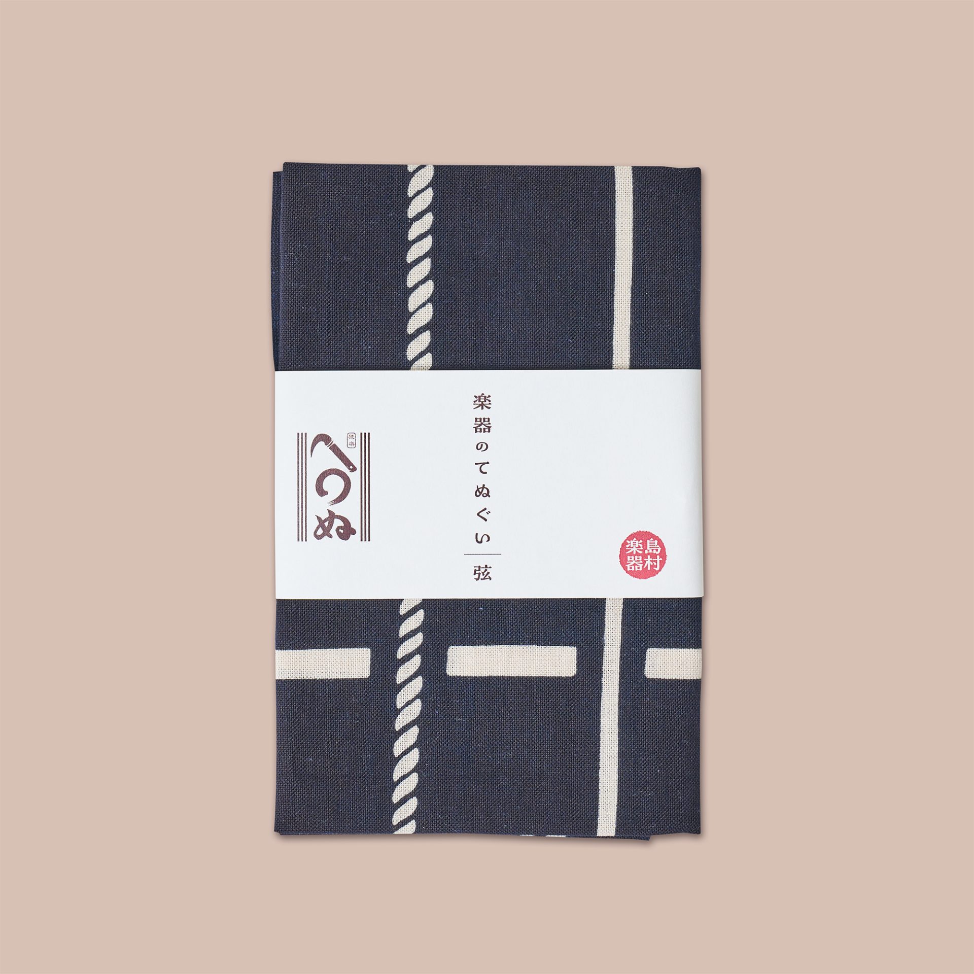 付属のてぬぐいは、ギター弦のイラストが描かれたオリジナルデザイン。汚れが目立ちにくいダークカラーなので、日常使いとして気兼ねなくお使いいただけます。