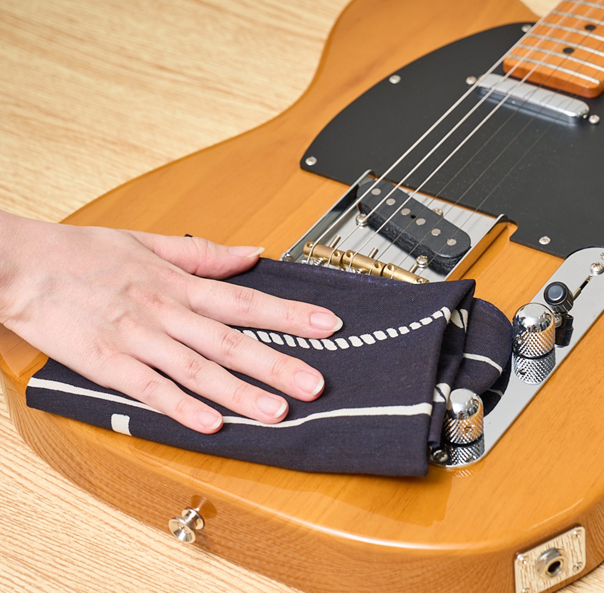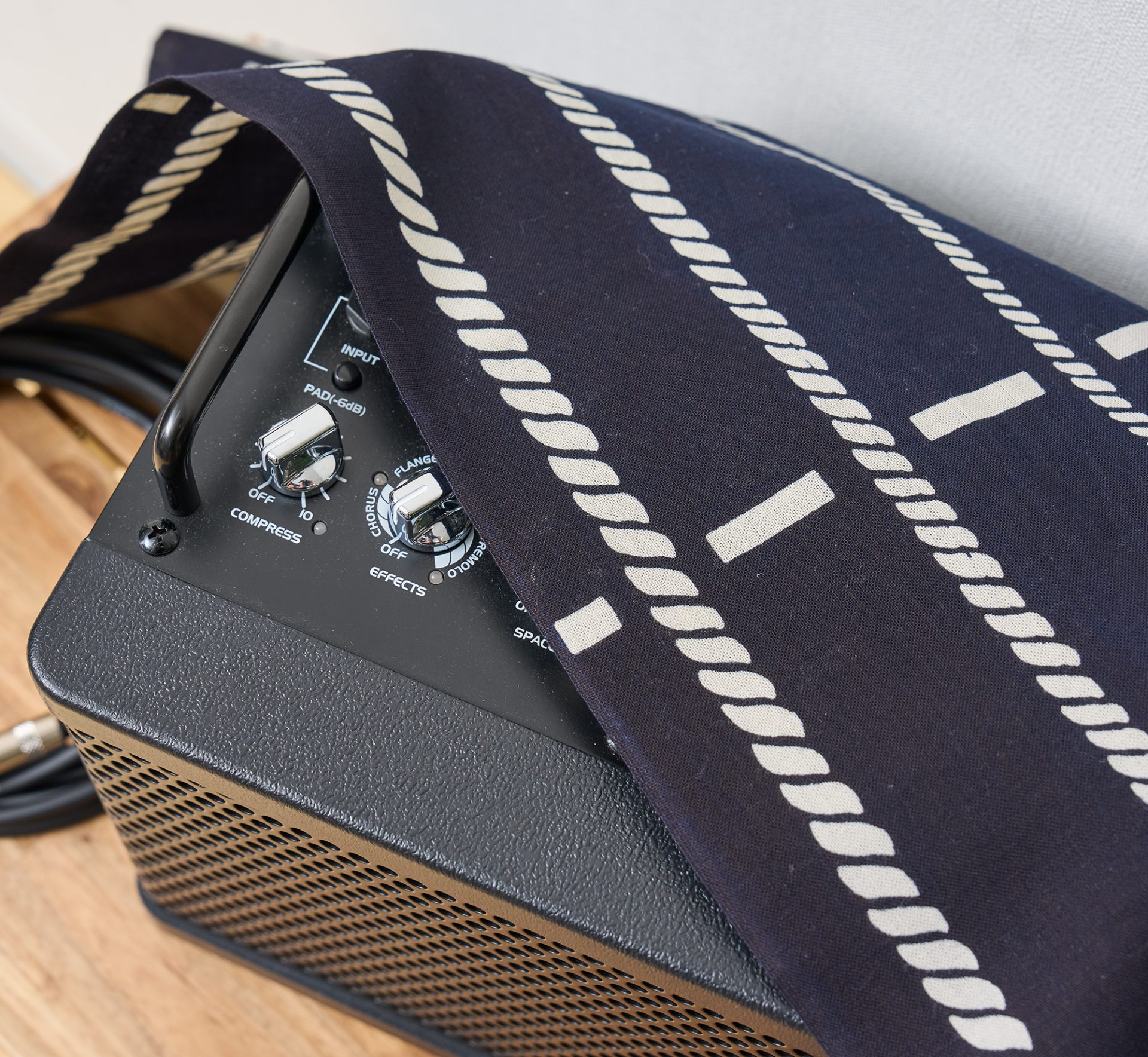ギターアンプや、スタンドに立てかけたギターにてぬぐいを被せれば、ホコリ除けとしてもおしゃれに活用できます。