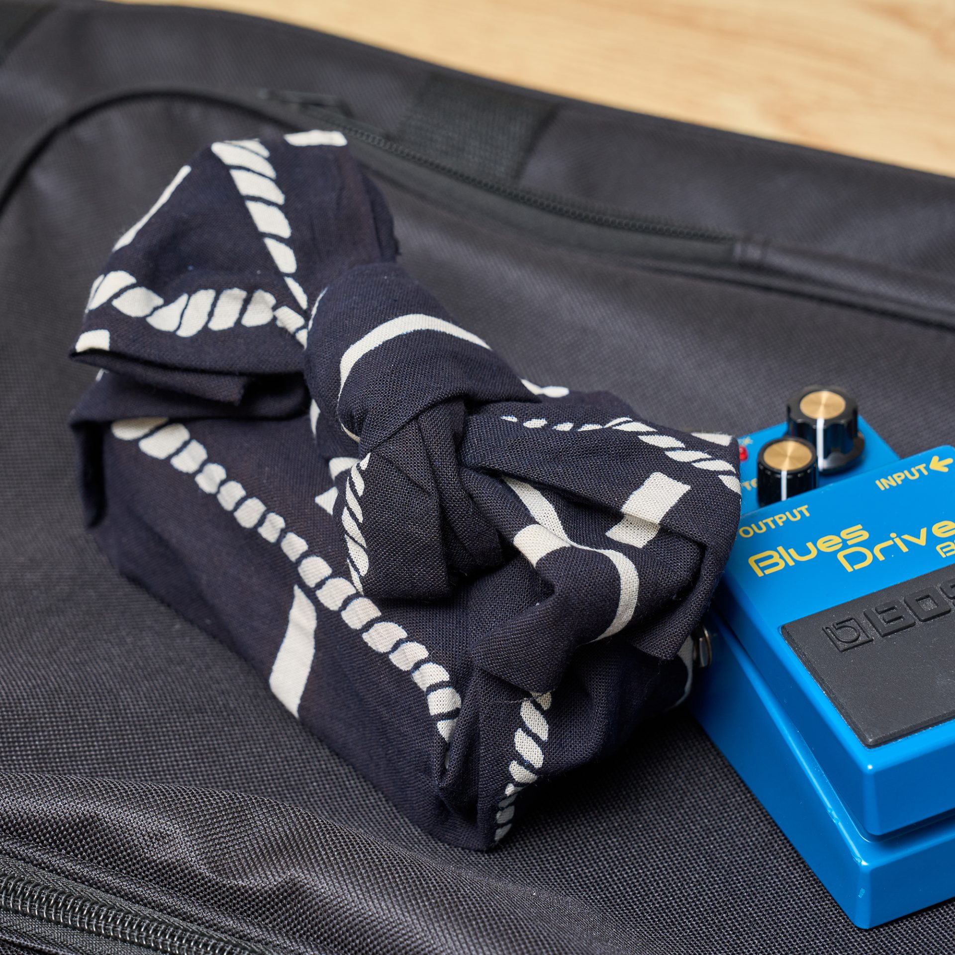 エフェクターなどの楽器周辺アイテムも、てぬぐいにくるめば持ち運び時のキズ防止に役立ちます。大切な楽器や道具をやさしく包んでご使用ください。
