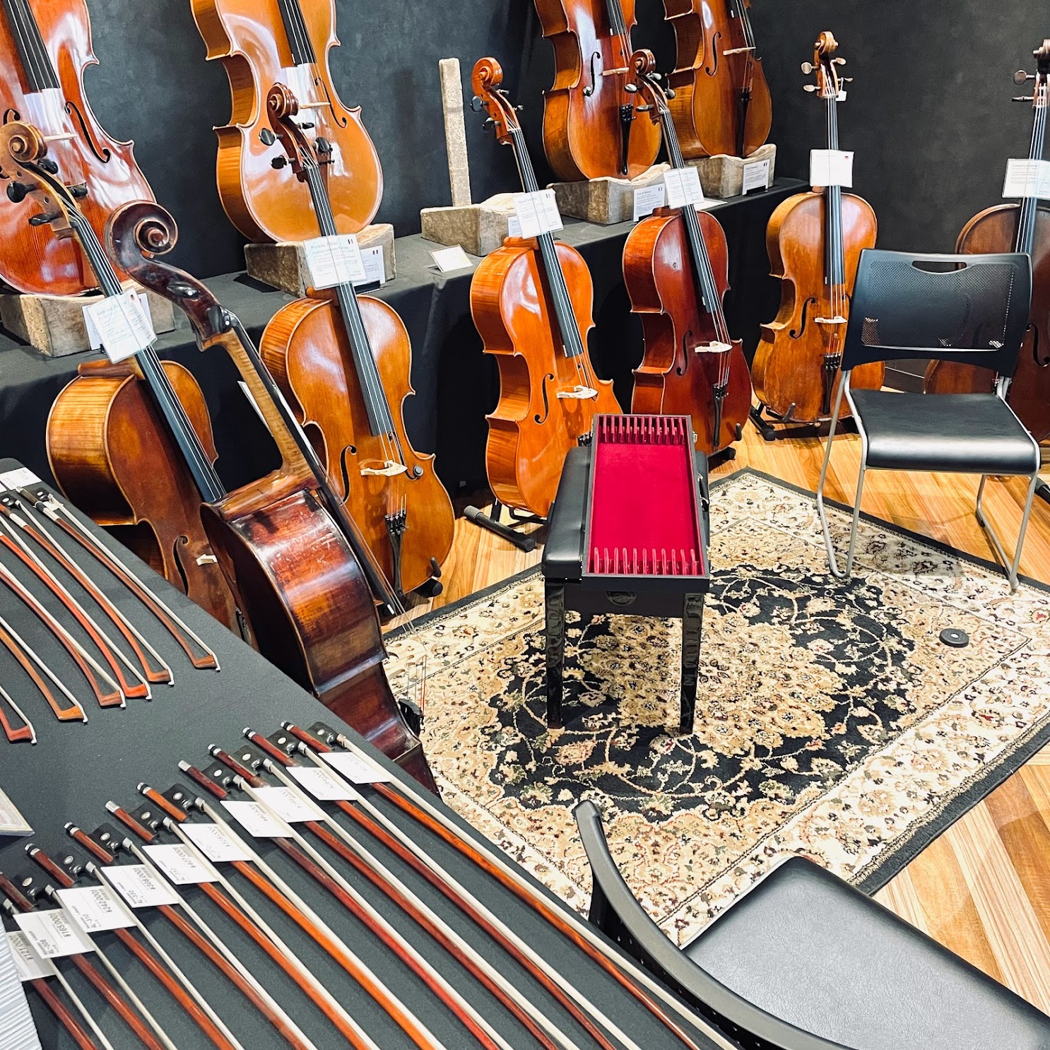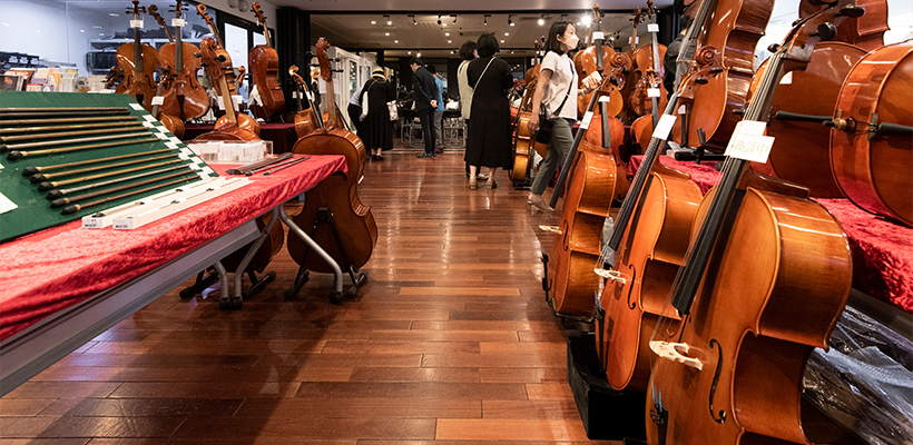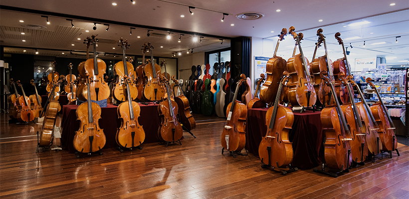 国内弦楽器関連企業、10社が厳選したチェロとチェロ弓が並びます。気に入ったチェロ、チェロ弓、ケース、エンドピンはすぐにお持ち帰りいただけます。豊富な選択肢と手に取る喜びをご堪能ください。