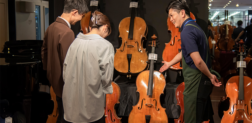 誰もが気兼ねなく試奏を楽しめるオープンな雰囲気の中で、初心者も上級者も入場無料で自由に試奏できます。あなたに最適なチェロを見つけるサポートをいたします。