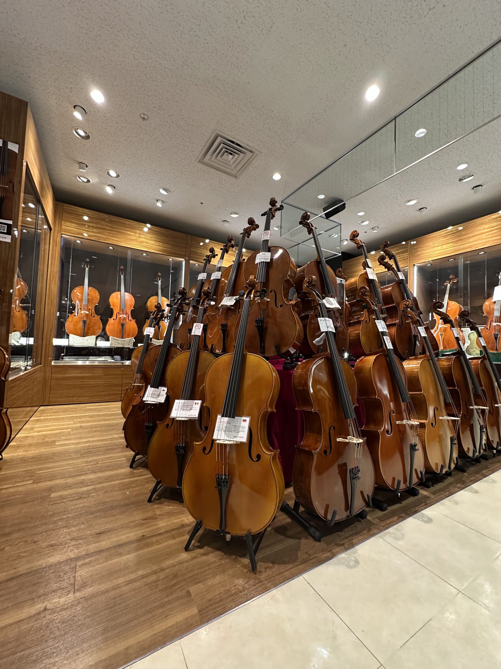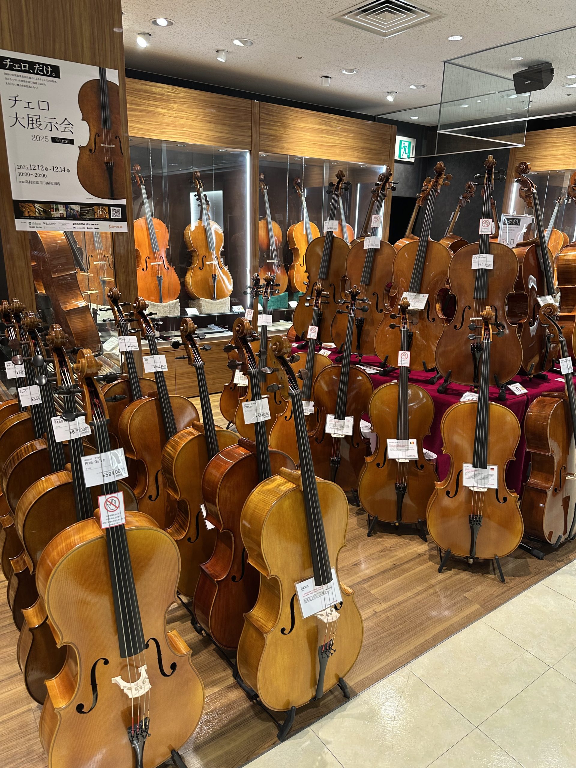 会場に入った瞬間、チェロだけに囲まれる空間に驚きました。普段の展示会とは違い、ここまでチェロに特化したラインナップを見るのは初めてで、まるで専門店を何軒も巡っているような感覚でした。気づけば時間を忘れて弾き続けていました。