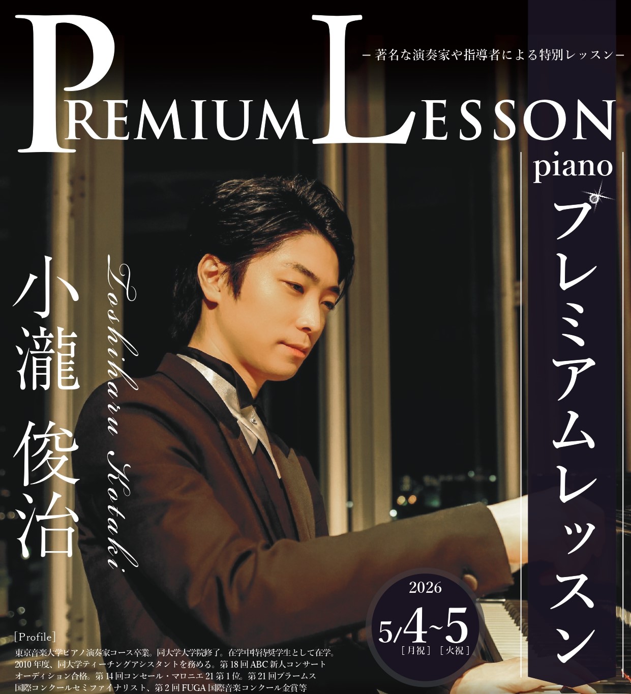 2026年5月4/5日 小瀧俊治 プレミアムレッスン(ピアノ)