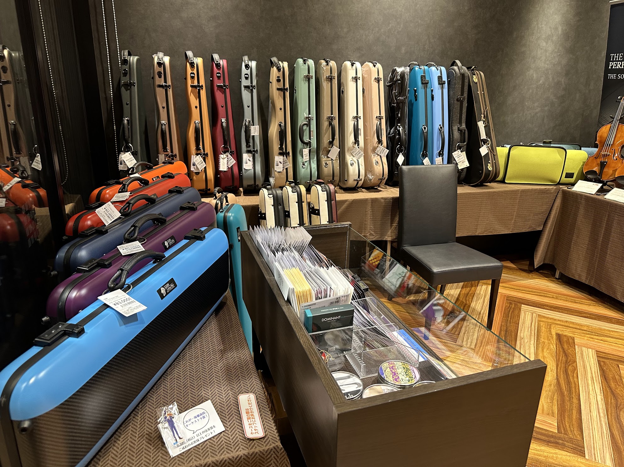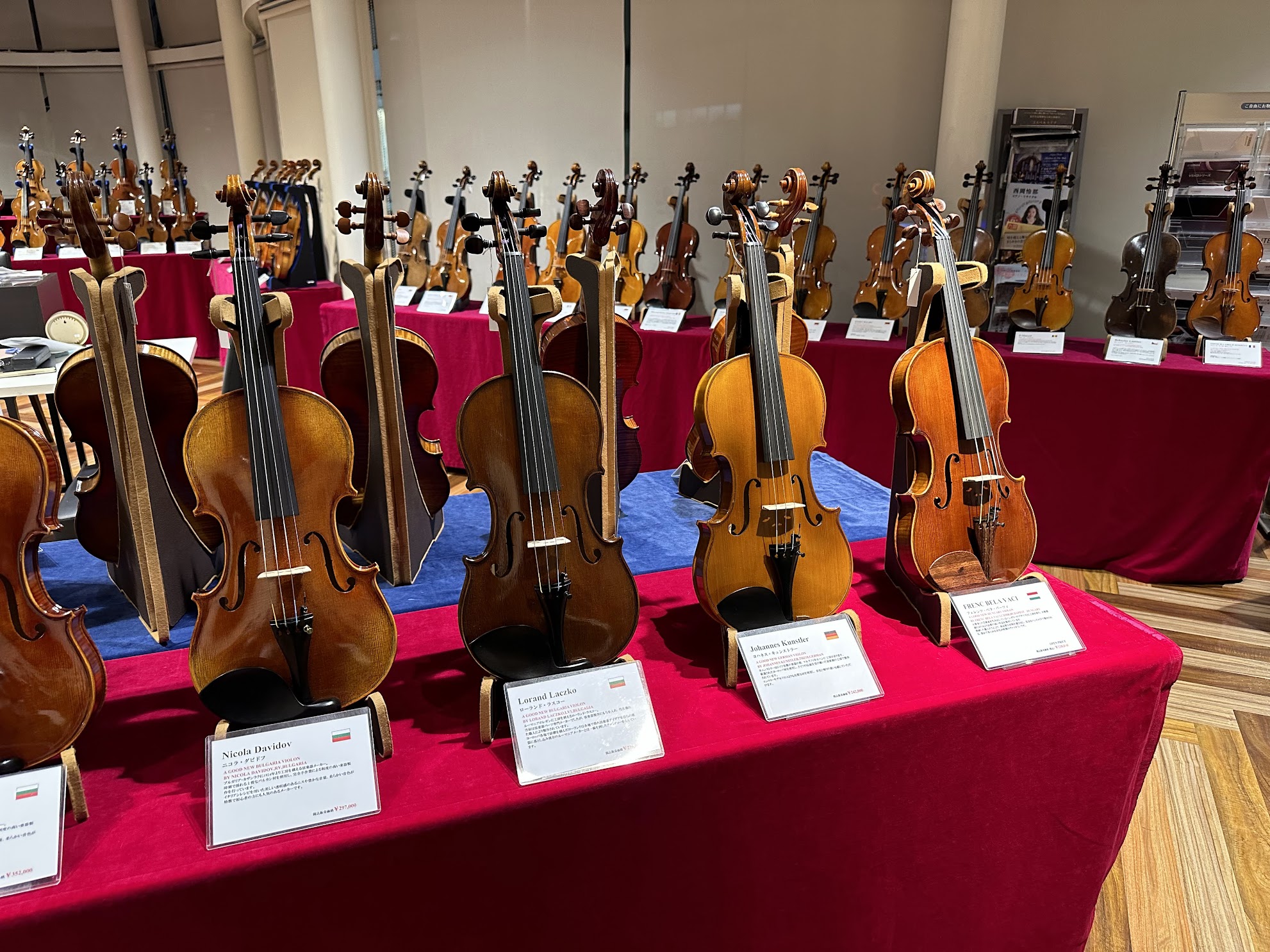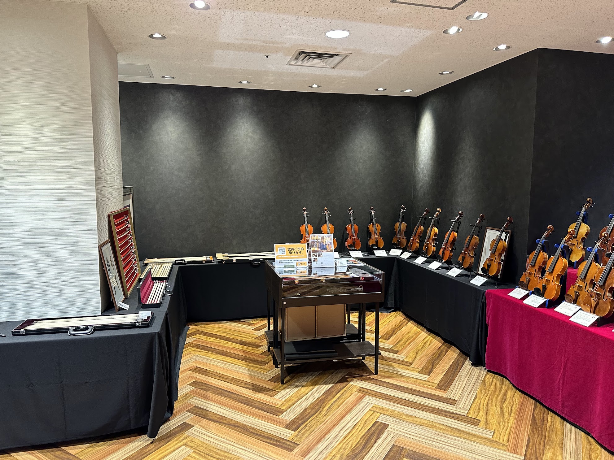 各会場では、弦楽器専門スタッフによるご案内と試奏他、お客様ご自身による、お手持ちの楽器との弾き比べもお楽しみいただけます。