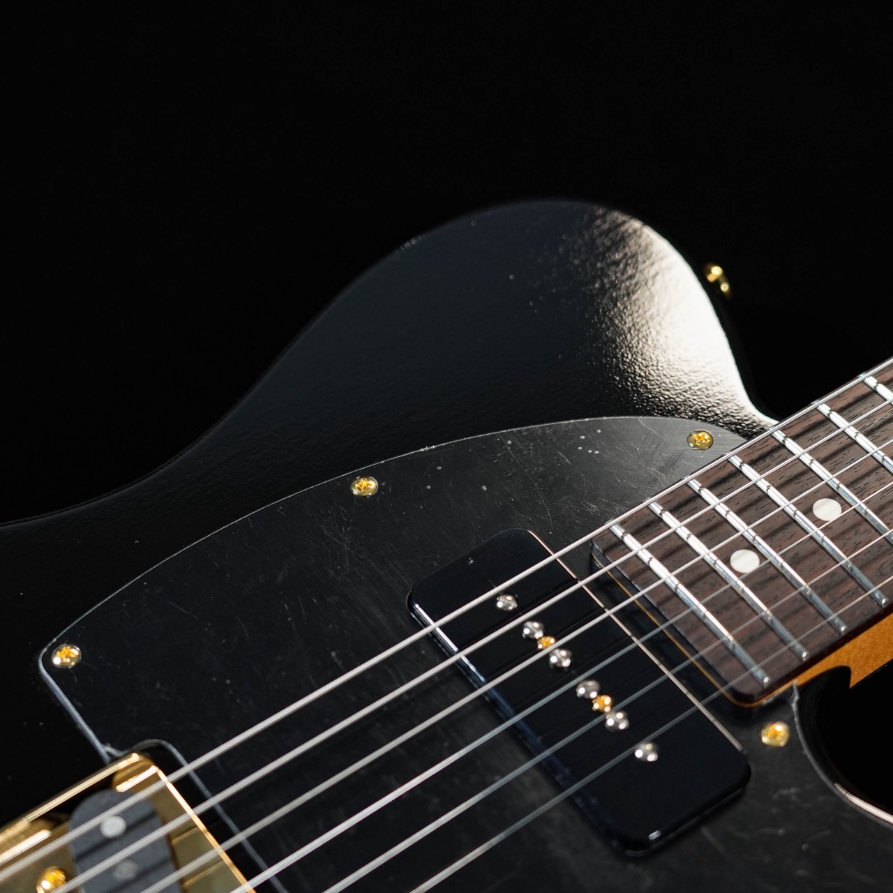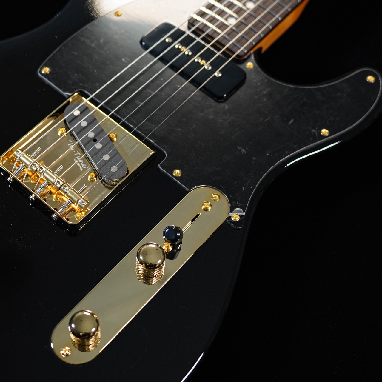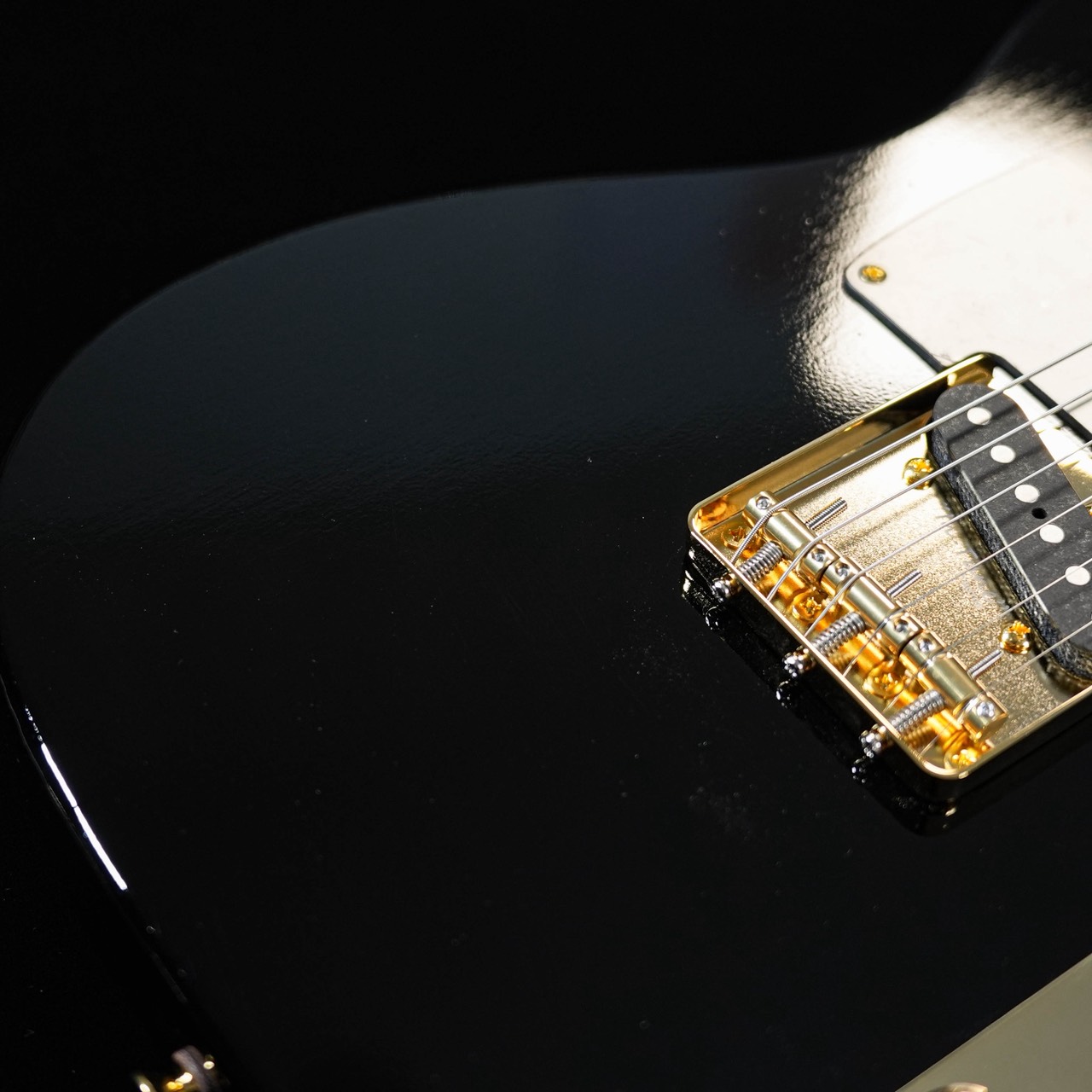 ボディ・ピックガード・ピックアップをブラックでまとめ、ゴールドパーツをあしらった高級感のある一本。