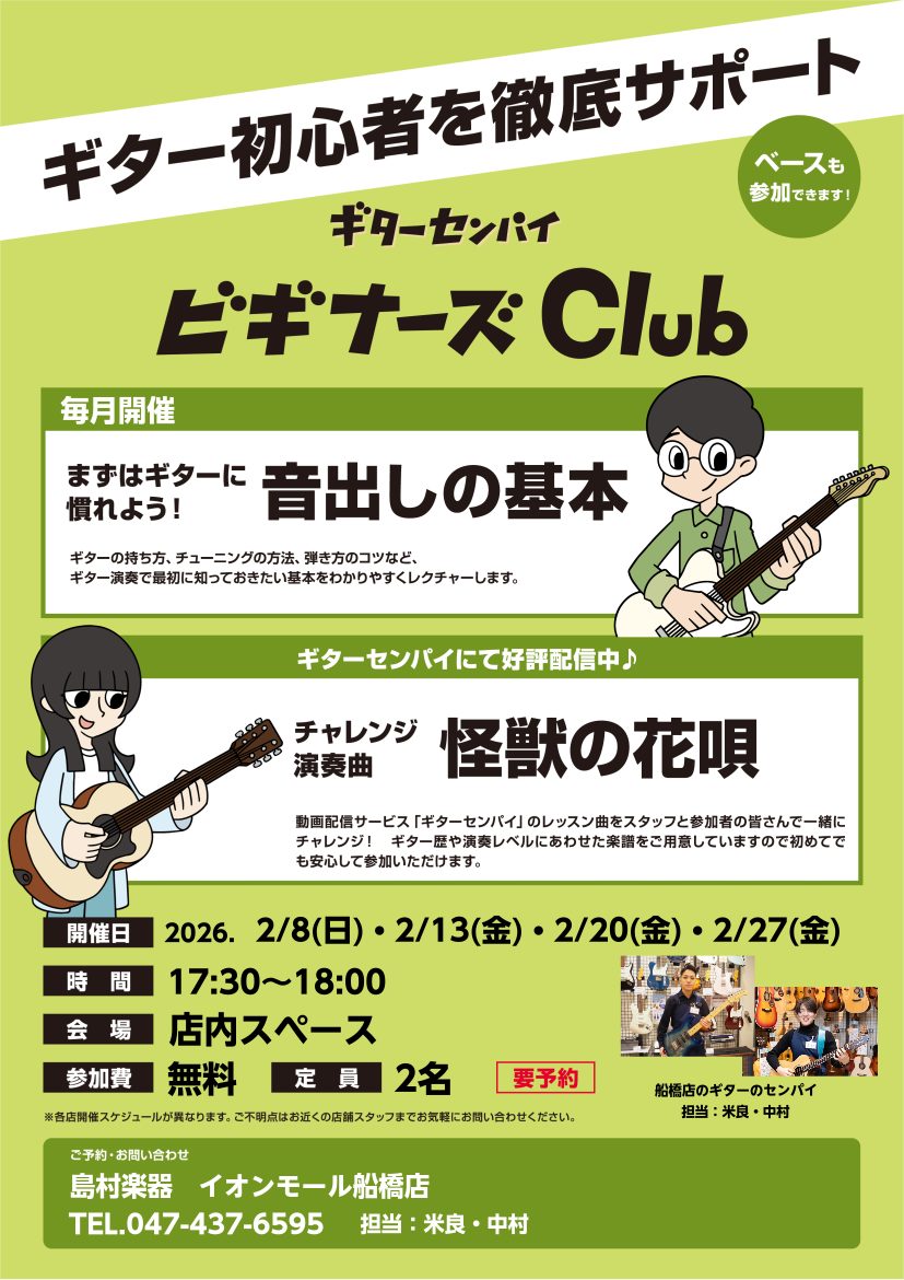 【2月開催】ビギナーズ倶楽部 ギター&ベース初心者を徹底サポートいたします!