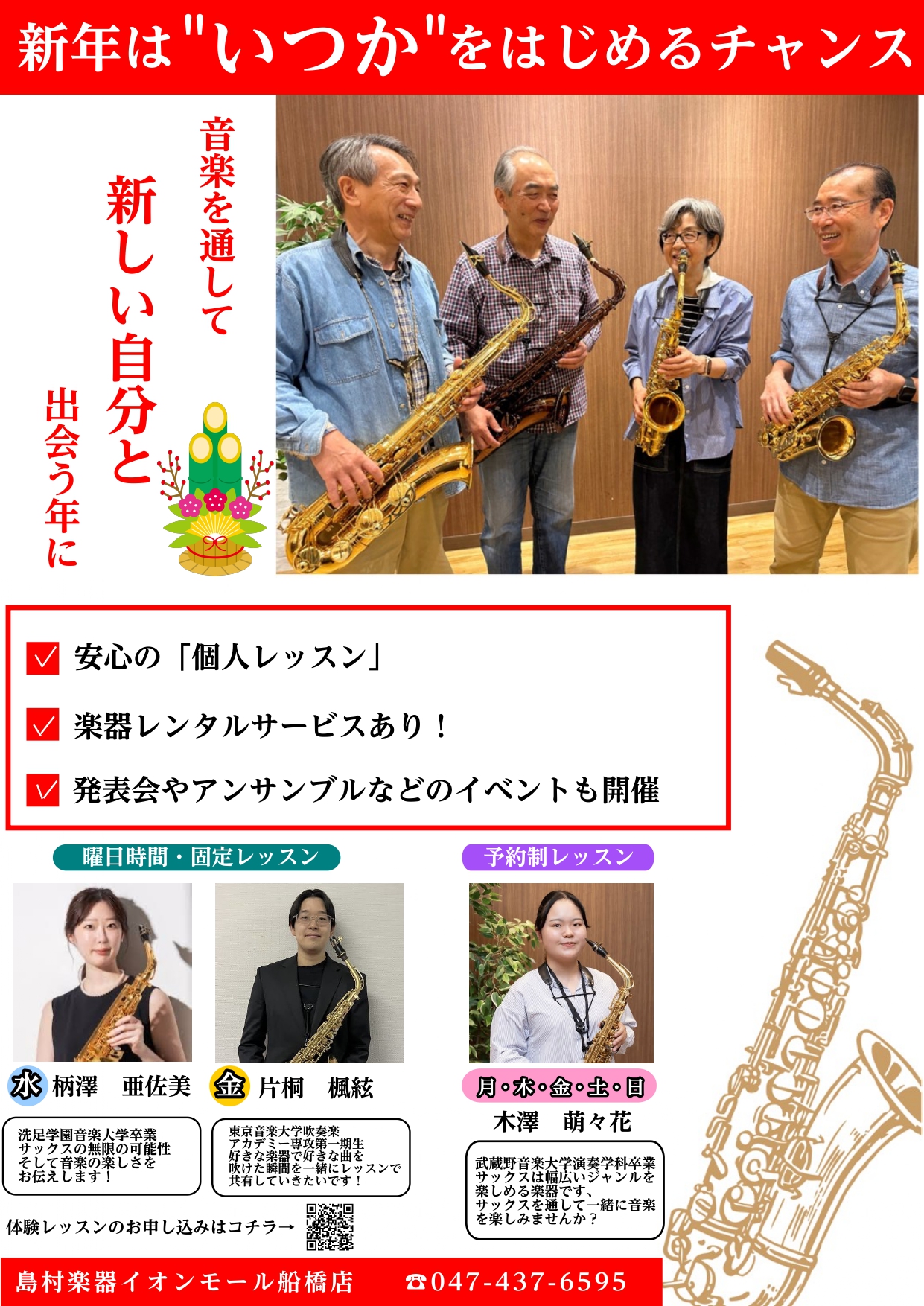 事始めに憧れのサックスを始めてみませんか?あなたのチャレンジを全力で応援いたします!