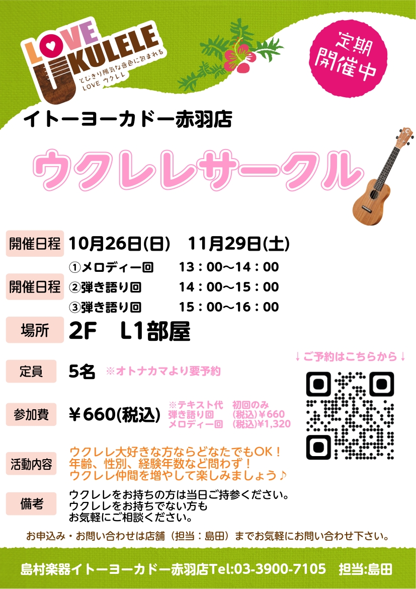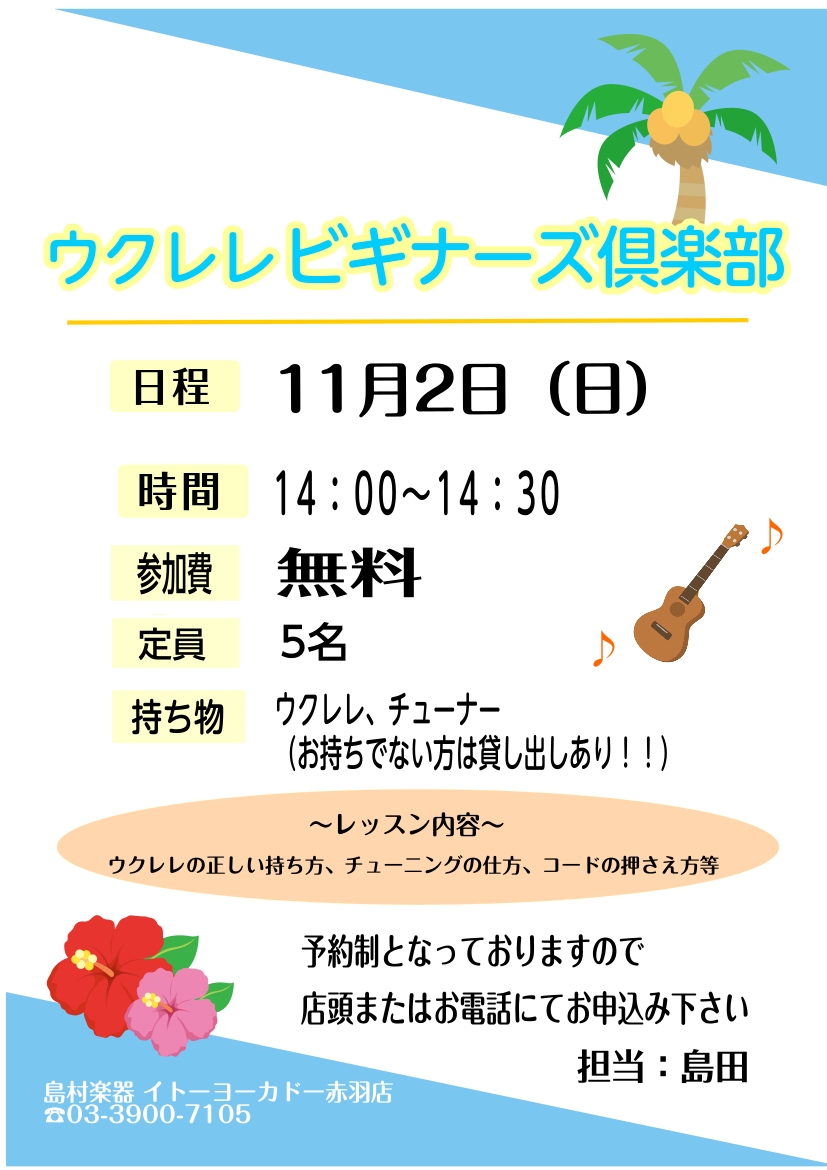 島村楽器赤羽店ではウクレレビギナーズ倶楽部・サークルを開催しております!