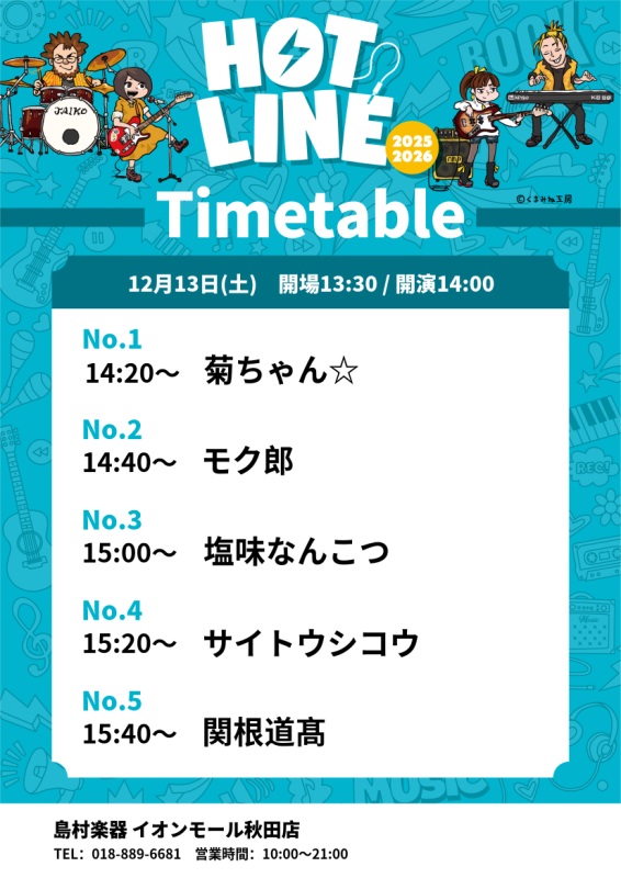 ![皆さんこんにちは! 12/13ライブ担当の土田・田中です! 本日は12月13日(日)に開催されたHOTLINE2026第2回店ライブ5組のライブパフォーマンスをレポートをさせていただきます! HOTLINEとは 40年以上の歴史を持つライブイベントが、もっと自由に、もっと楽しく生まれ変わります。 「 […]](https://www.shimamura.co.jp/shop/akita/wp-content/uploads/sites/18/2025/12/20251218-hot.jpg)