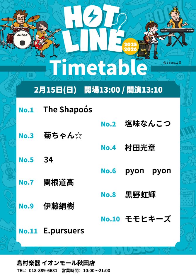 【ライブレポート】HOTLINE2026 第4回店ライブ2/15(日)