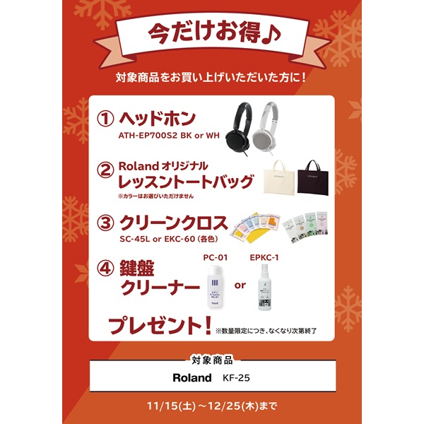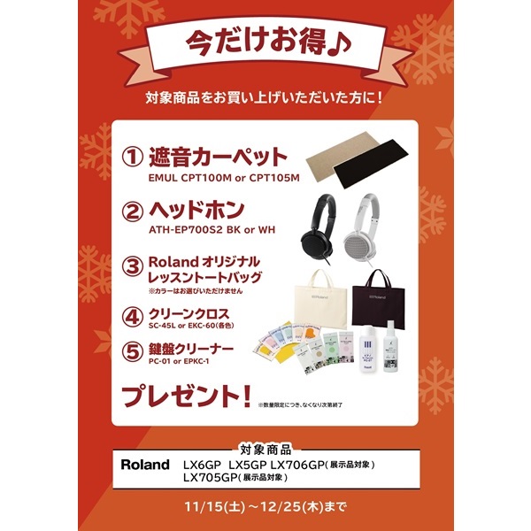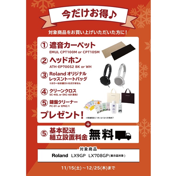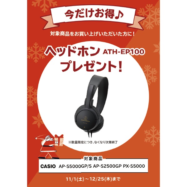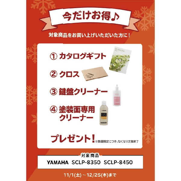 対象の電子ピアノをご購入いただくと、特典がございます!