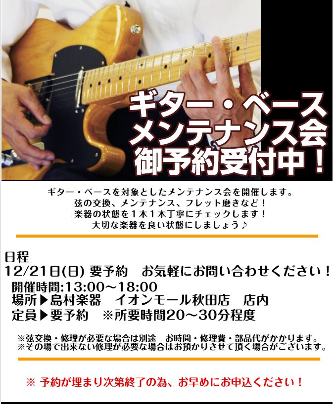 ギター・ベース弦交換メンテナンス会開催のお知らせ