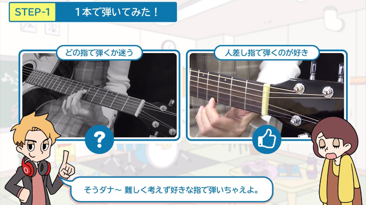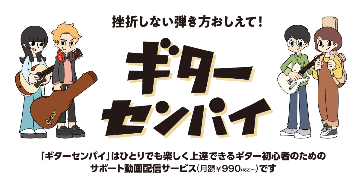 初心者のための動画配信サービス「ギターセンパイ」のレッスン曲が課題曲なので、コードが弾けない初心者でも1本の指で1つの弦が鳴らせれば「弾けた気分」でライブ体験ができます!