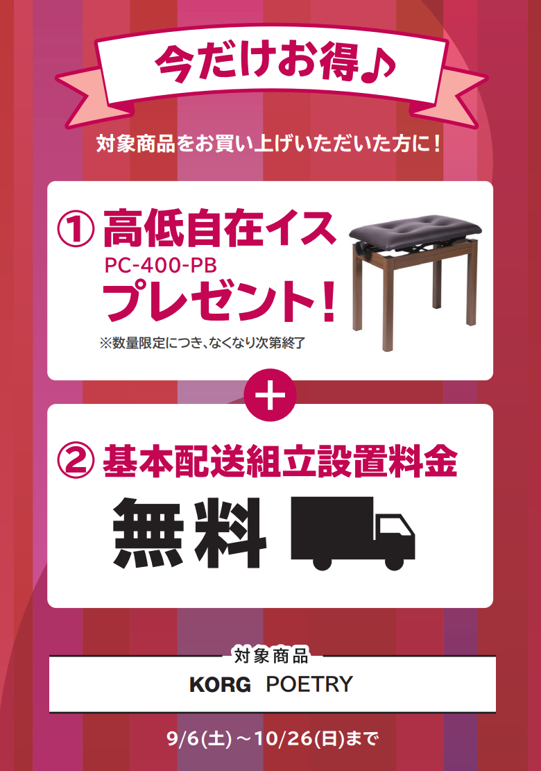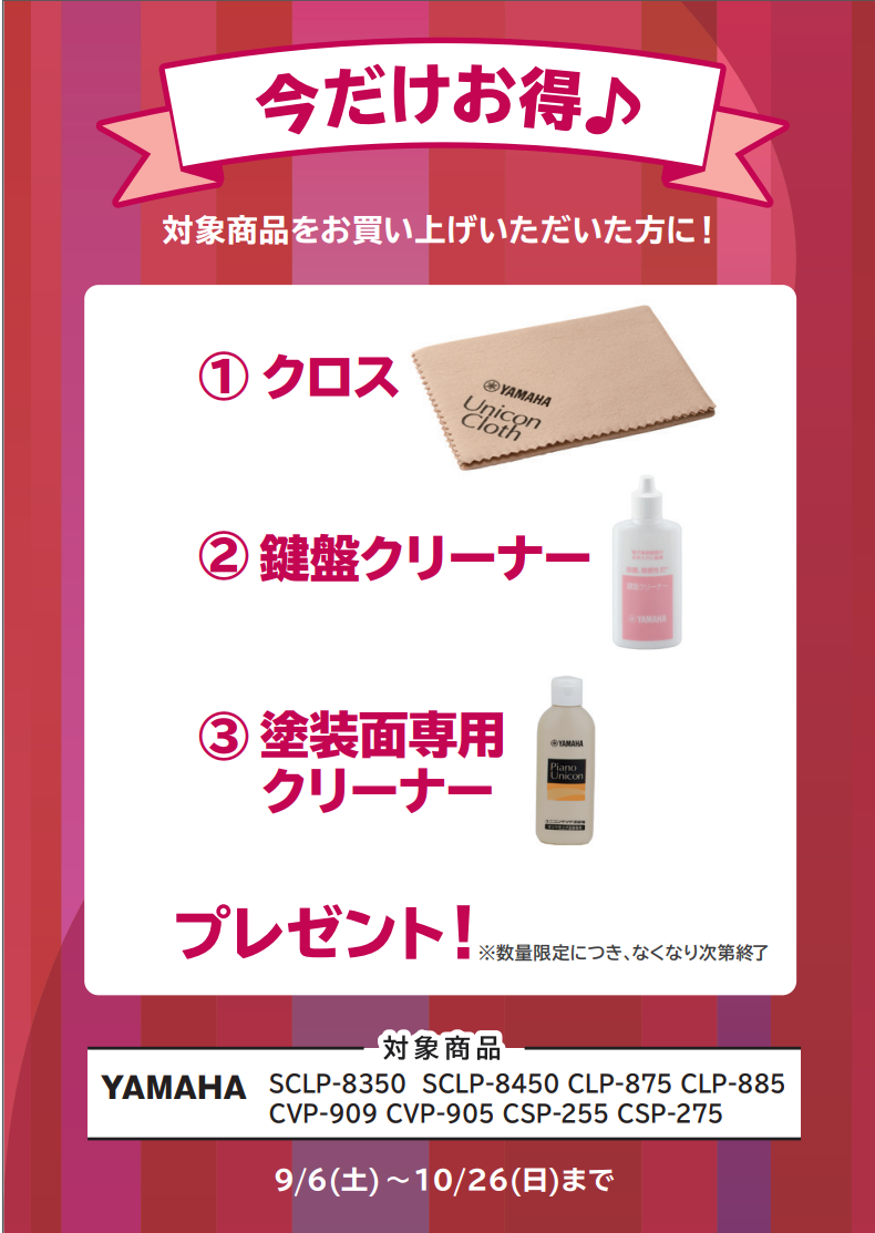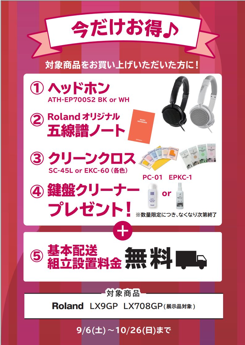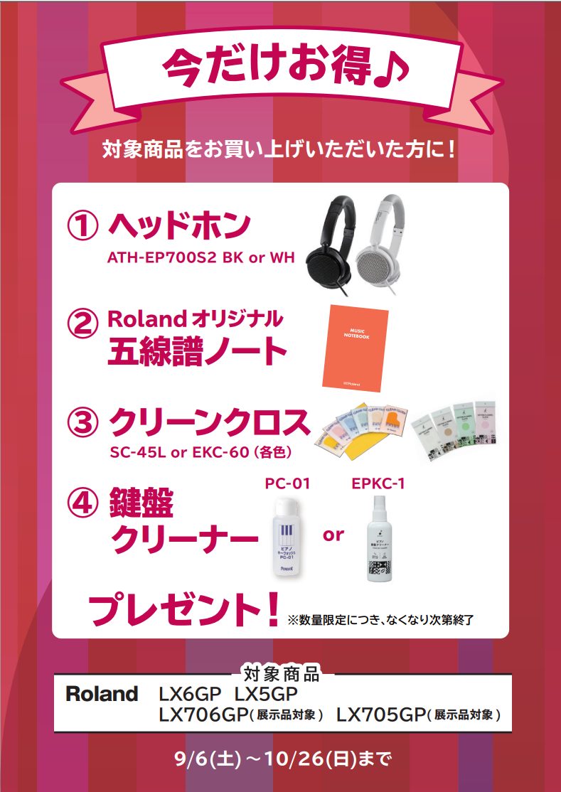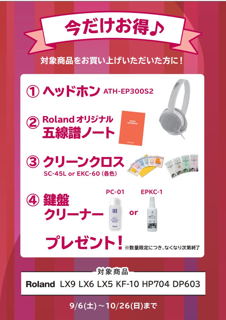 ヤマハ・カワイ・ローランド・カシオ・コルグ等主要メーカーを中心に、豪華特典を多数ご用意させていただきました。