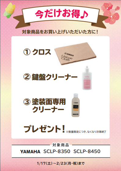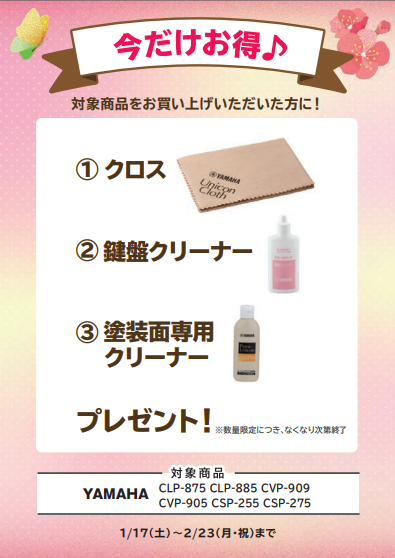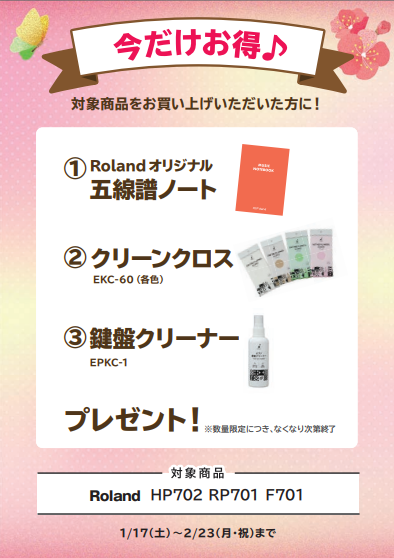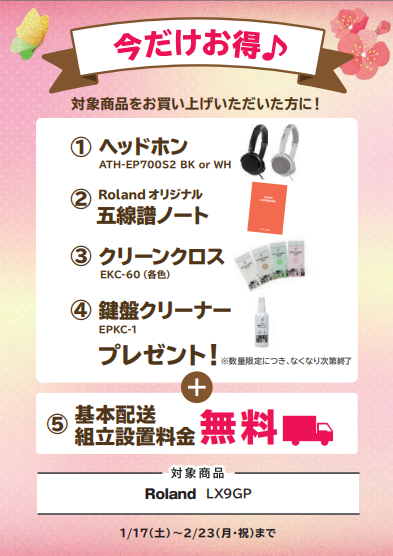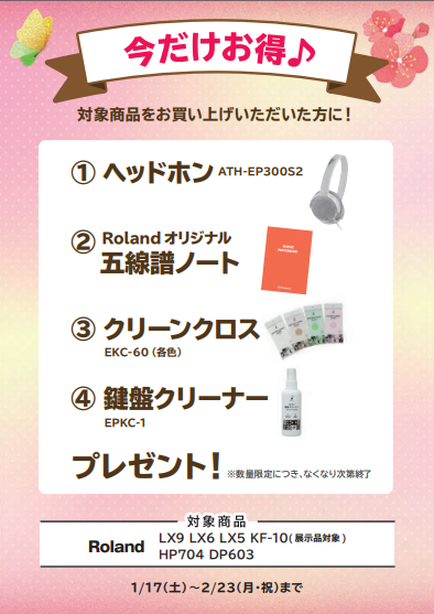 ヤマハ・カワイ・ローランド・カシオ等主要メーカーを中心に、豪華特典を多数ご用意させていただきました。