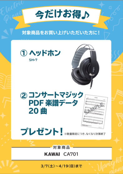 ヤマハ・カワイ・ローランド・カシオ等主要メーカーを中心に、豪華特典を多数ご用意させていただきました。
