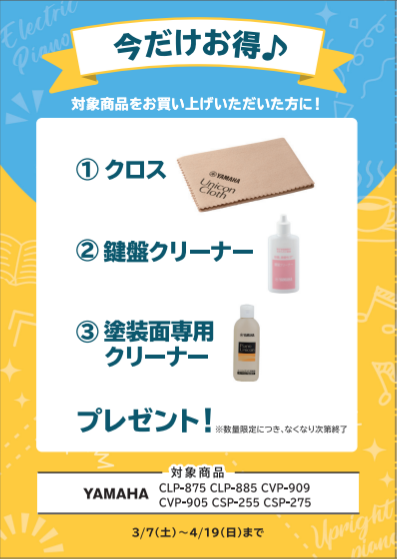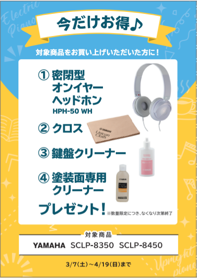 【YAMAHA】電子ピアノご購入特典
