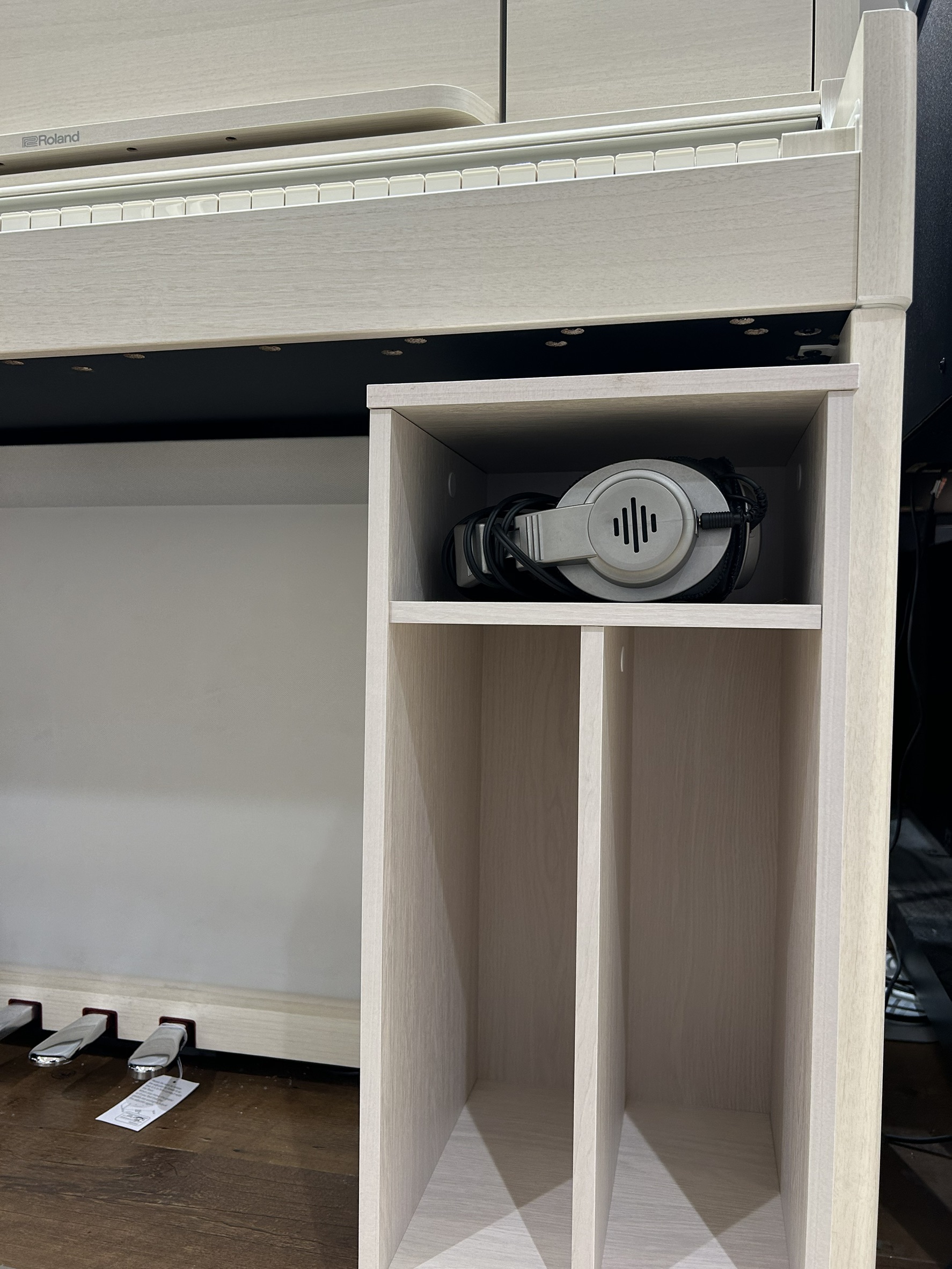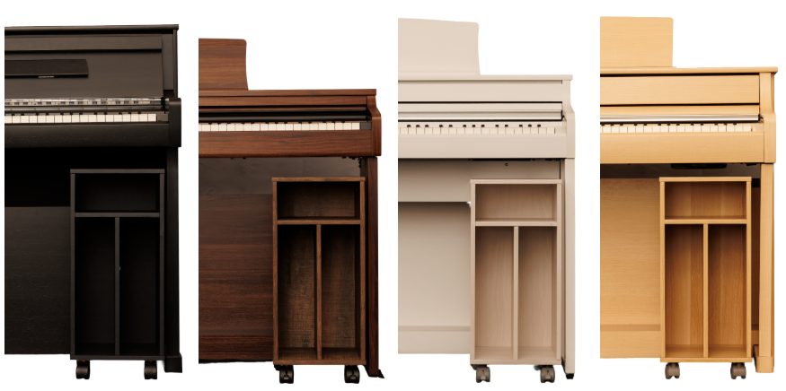 電子ピアノの足元に収まる収納ボックスです。多くのサイズの電子ピアノでご使用いただけます。