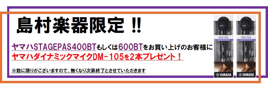 【キャンペーン】YAMAHAポータブルPAシステム STAGEPAS400BT&600BTダイナミックマイク2本プレゼントキャンペーン【数量限定】