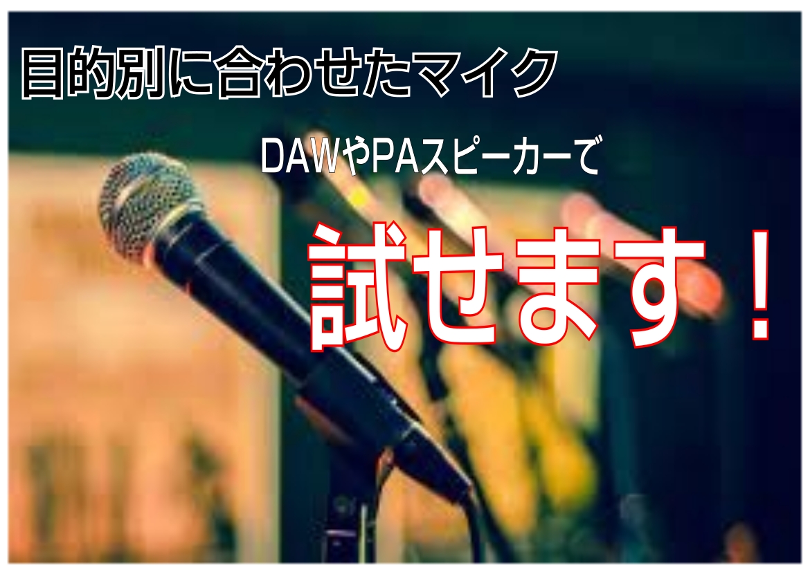 「どんなマイクを選べば良いのかわからない…」という方のために、目的に合わせたマイクの特徴と、当店展示ラインナップをご紹介!