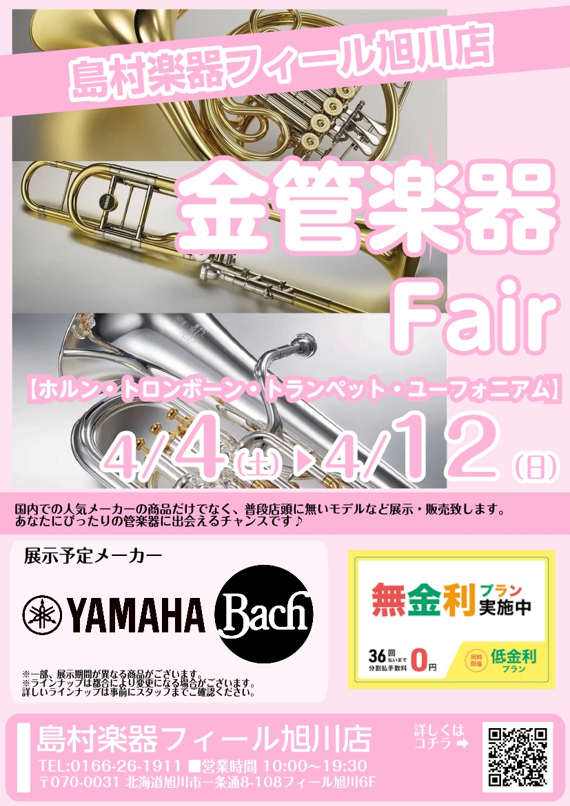 この度、島村楽器 フィール旭川店では2026年4月4日(土)~4/12(日)に金管楽器フェアを開催いたします!