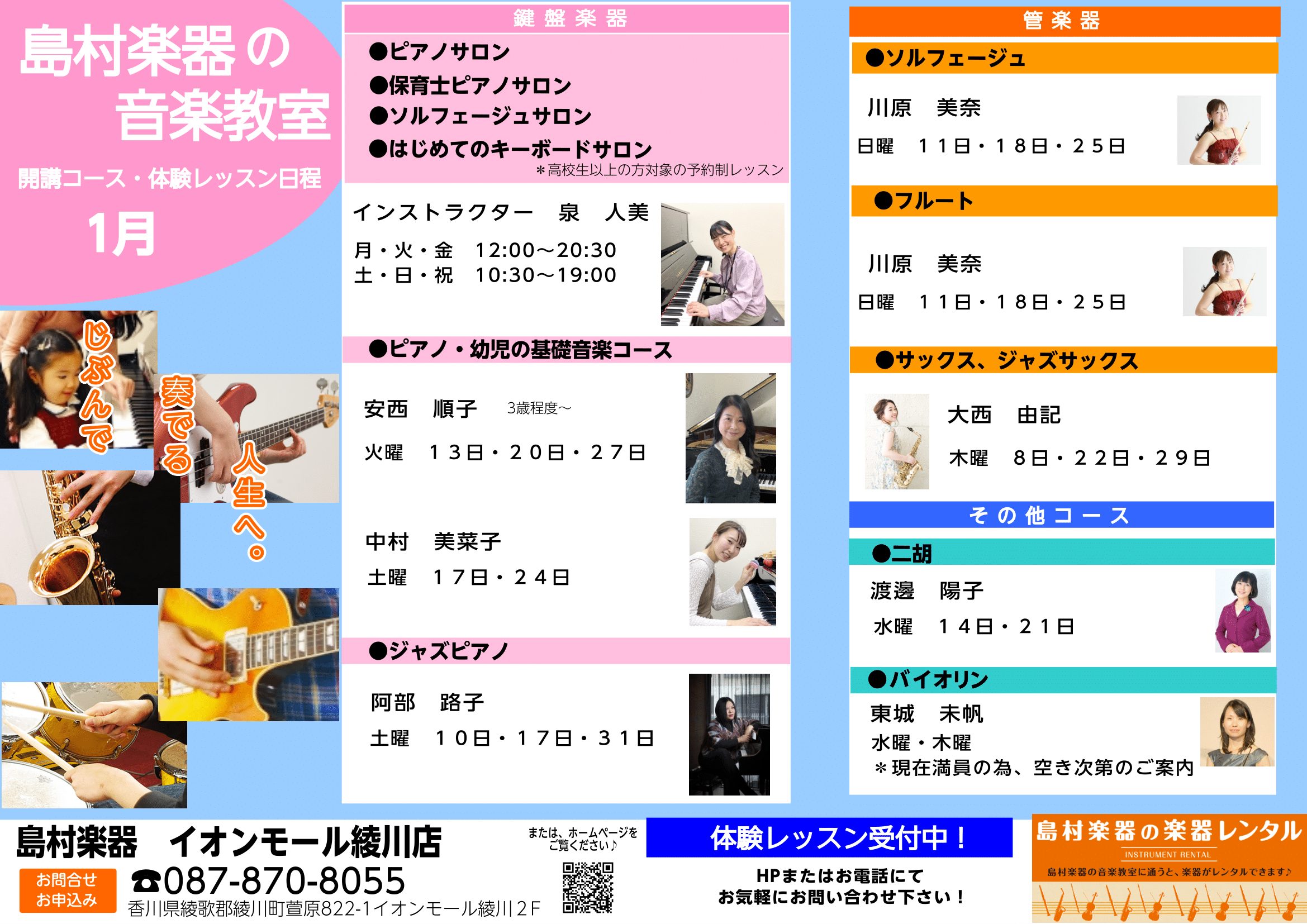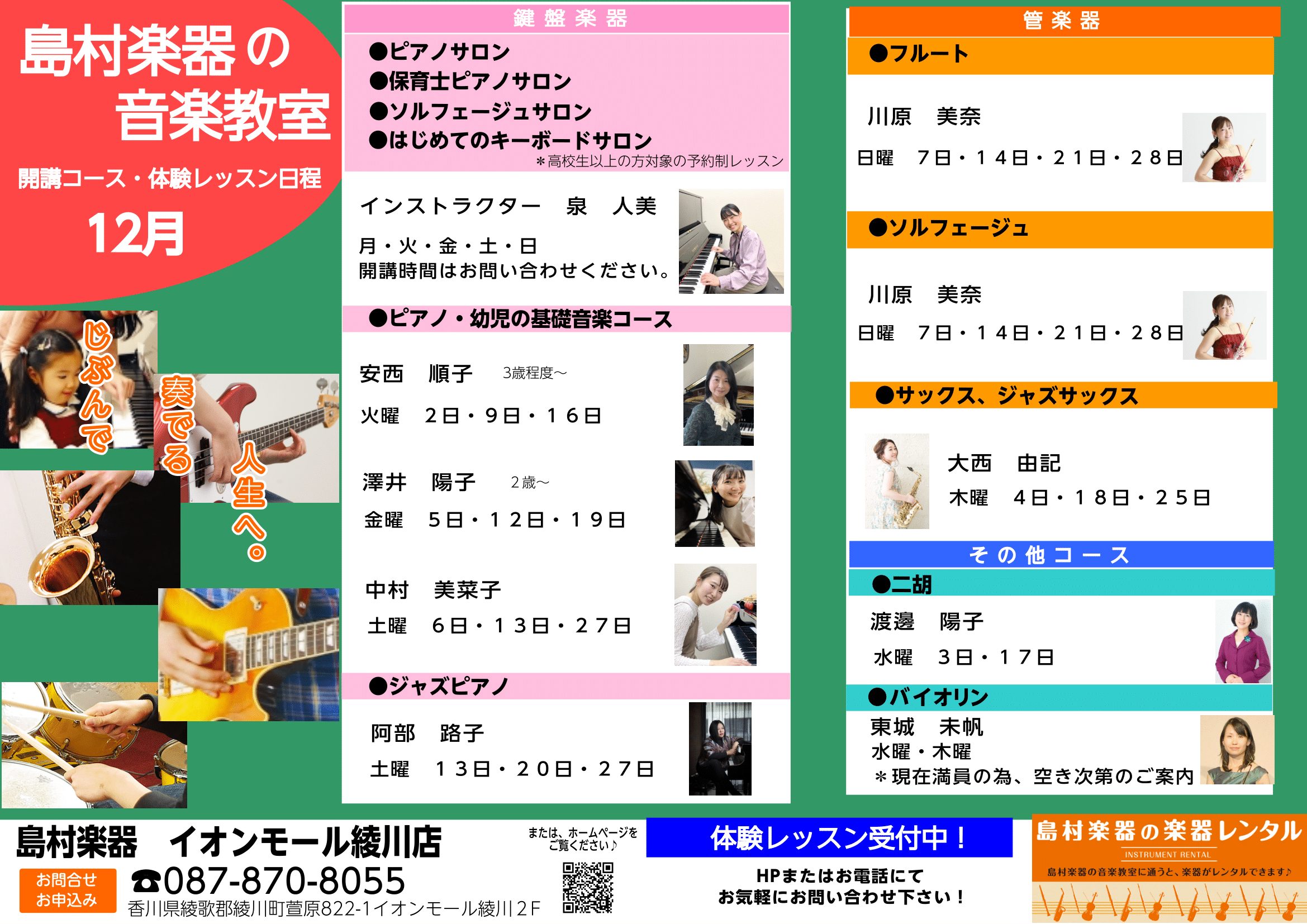 11/30更新【音楽教室】イオンモール綾川店の体験レッスンスケジュール《 12月・1月》