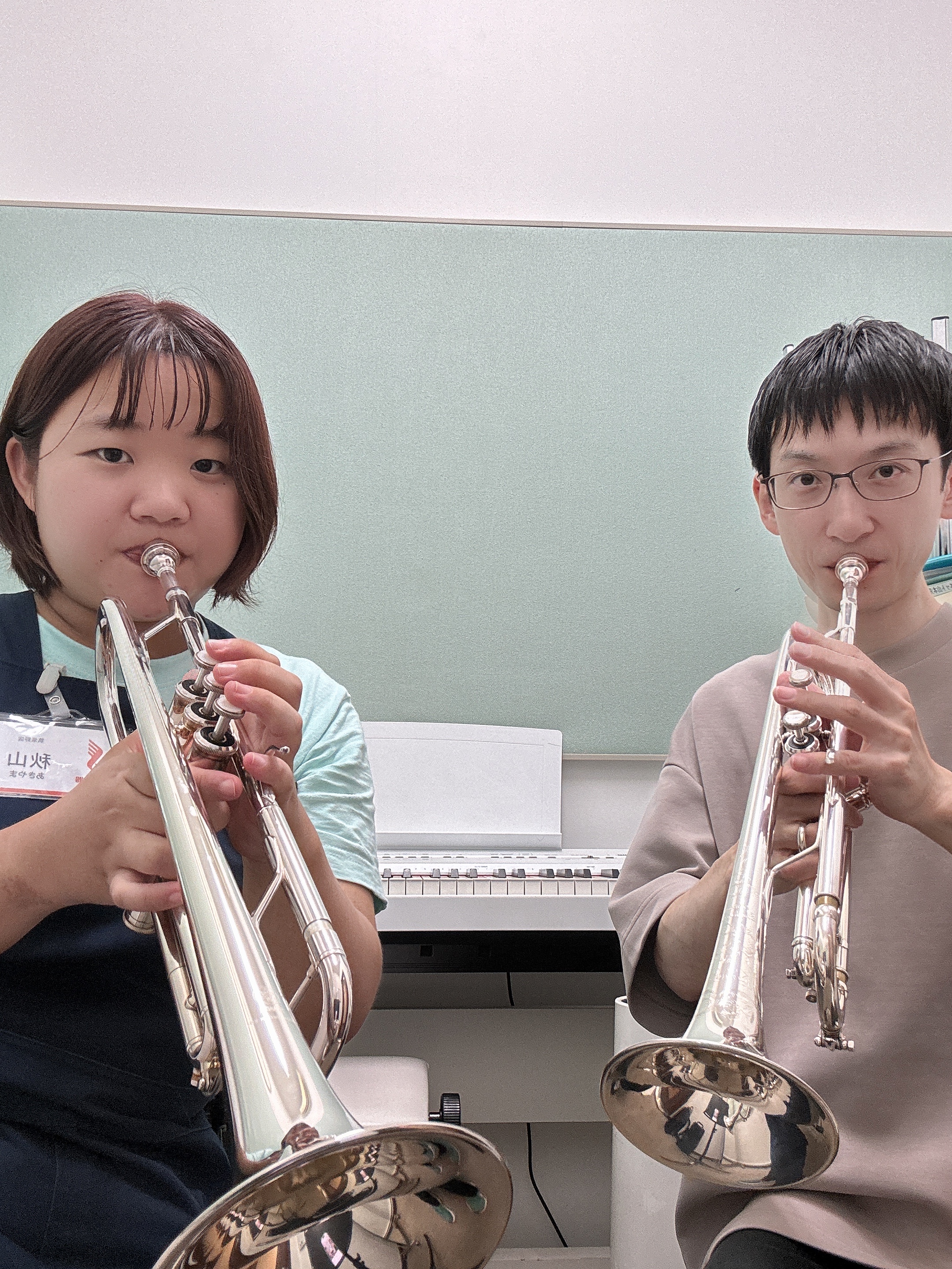 楽器に息が入っていくことを感じて、息を入れるだけでは楽器が鳴らない事を実感してもらうことを目的としているそうです。