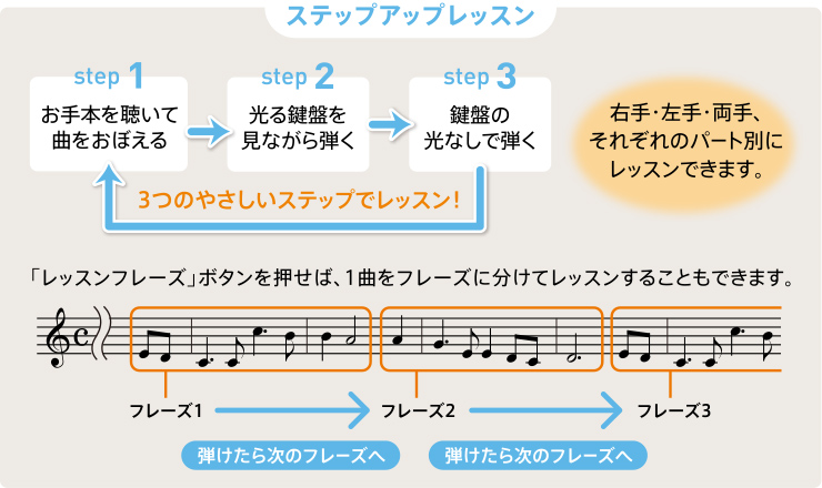 鍵盤が光って、弾く場所を教えてくれる光ナビゲーションキーボード。