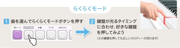 1つの鍵盤でも演奏を楽しめる「らくらくモード」