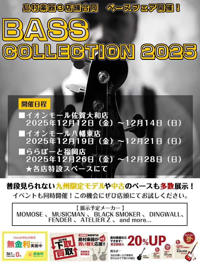 またエフェクターやアンプの展示、ベーシストのためのイベントも各店で行いますので、是非ご期待ください!!