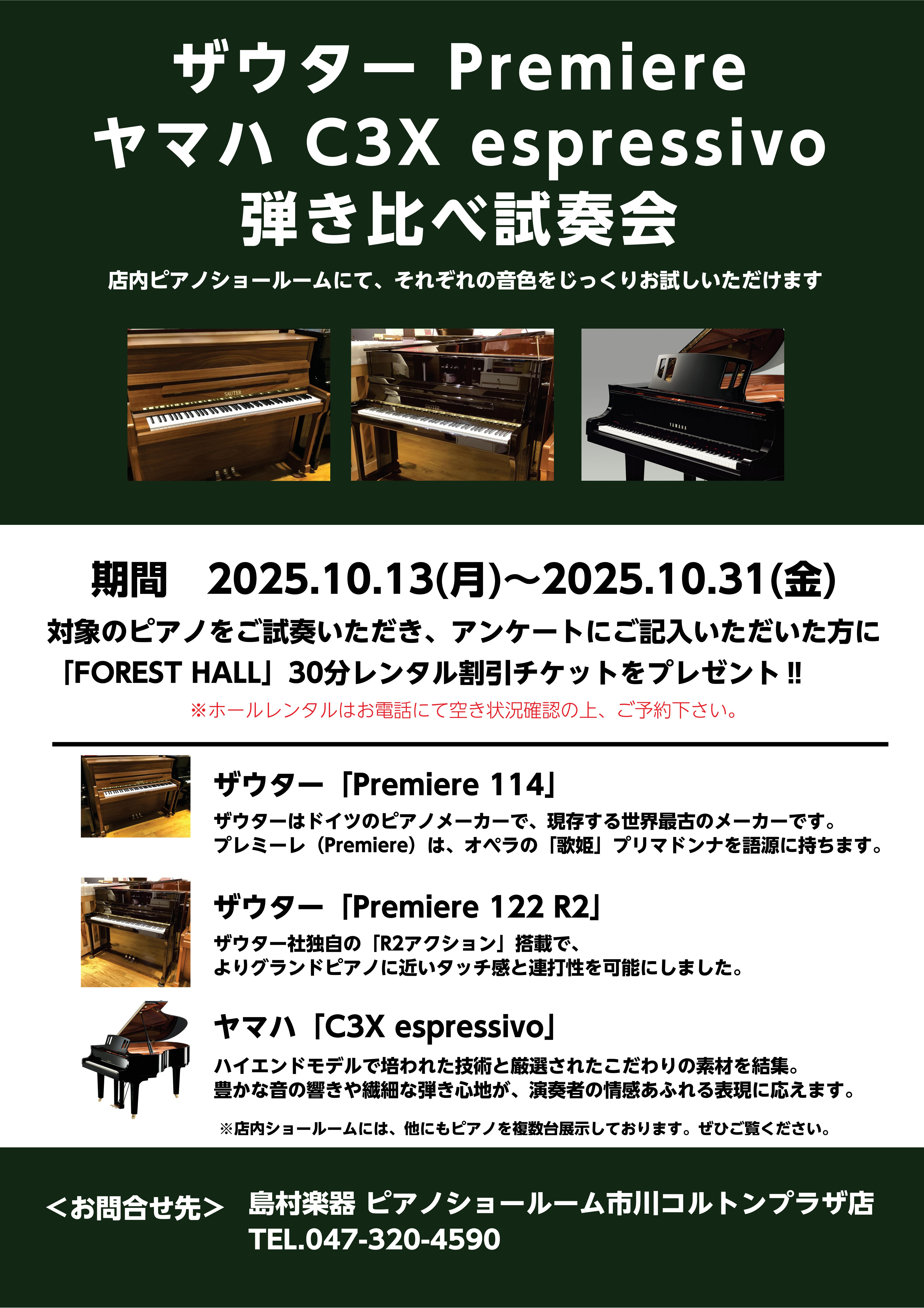 同時開催・ザウターPremiere・ヤマハC3X espressivo弾き比べ試奏会