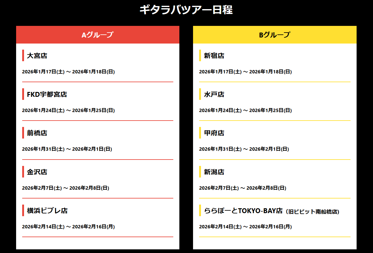 ギター好きのためのギターの祭典「ギタラバ」がツアーとなって全国10店舗で開催します。