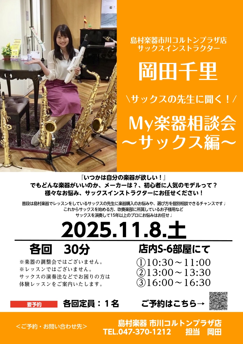 ![CONTENTSMy楽器相談会~サックス編~イベント詳細こんな方へオススメ♬インストラクター紹介アクセス・お問い合わせMy楽器相談会~サックス編~ 皆様こんにちは♪サックスインストラクターの岡田です! この度、『いつかは自分の楽器が欲しい!』『ネットで調べてもいろいろな情報があってどれがいいんだろう […]](https://www.shimamura.co.jp/shop/colton/wp-content/uploads/sites/36/2025/11/20251101-shima251101-0183.jpg)
