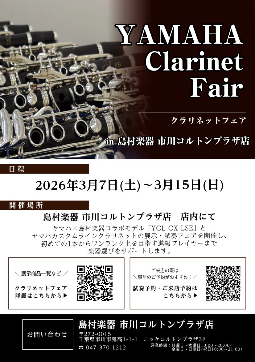 【クラリネットフェア】YAMAHAクラリネットフェア開催!(3月7日(土)~15日(日))