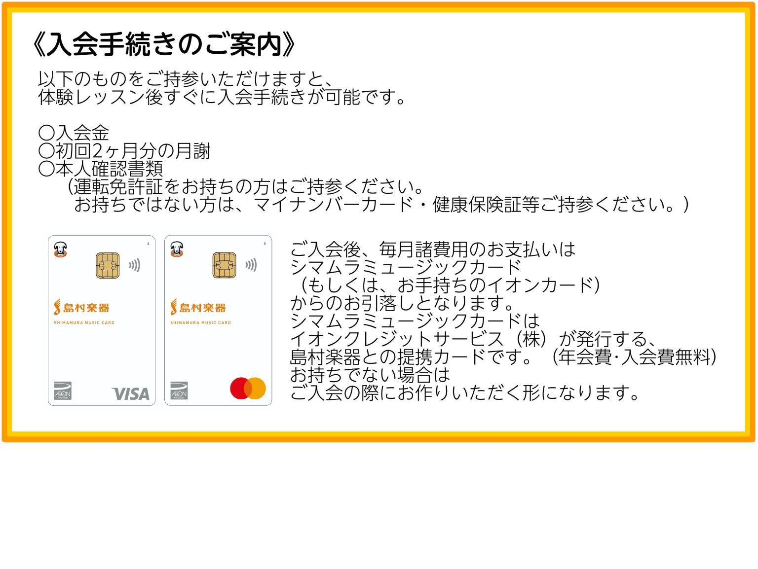 ・体験レッスン後、即日にてご入会手続きを希望の方は、ご入会手続きに必要なものをご準備ください。(次項目に記載をしております)