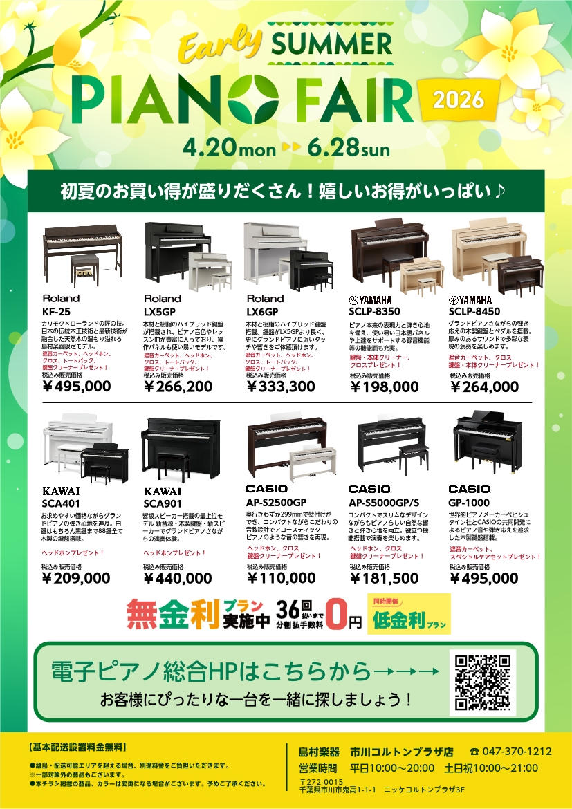 アーリーサマーピアノフェア2026(4/20(月)~6/28(日))開催中!!