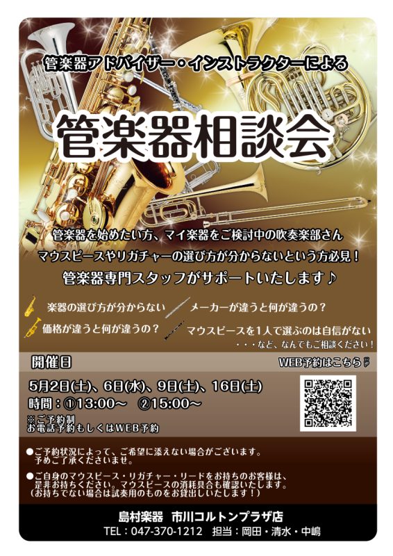 自分の楽器を選びたい!そんな方はこちら✅”管楽器相談会”