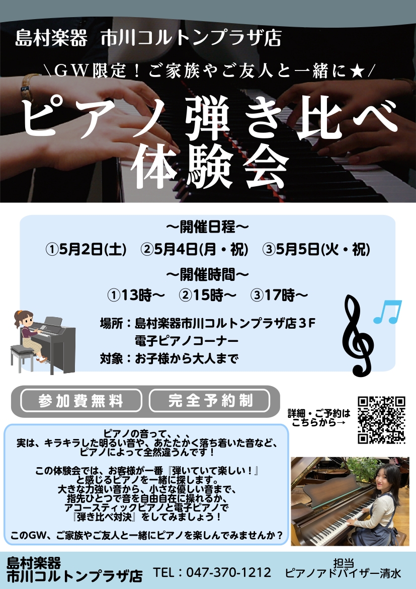【おうちピアノ相談会 GW編】『ピアノ弾き比べ体験会』 開催!!