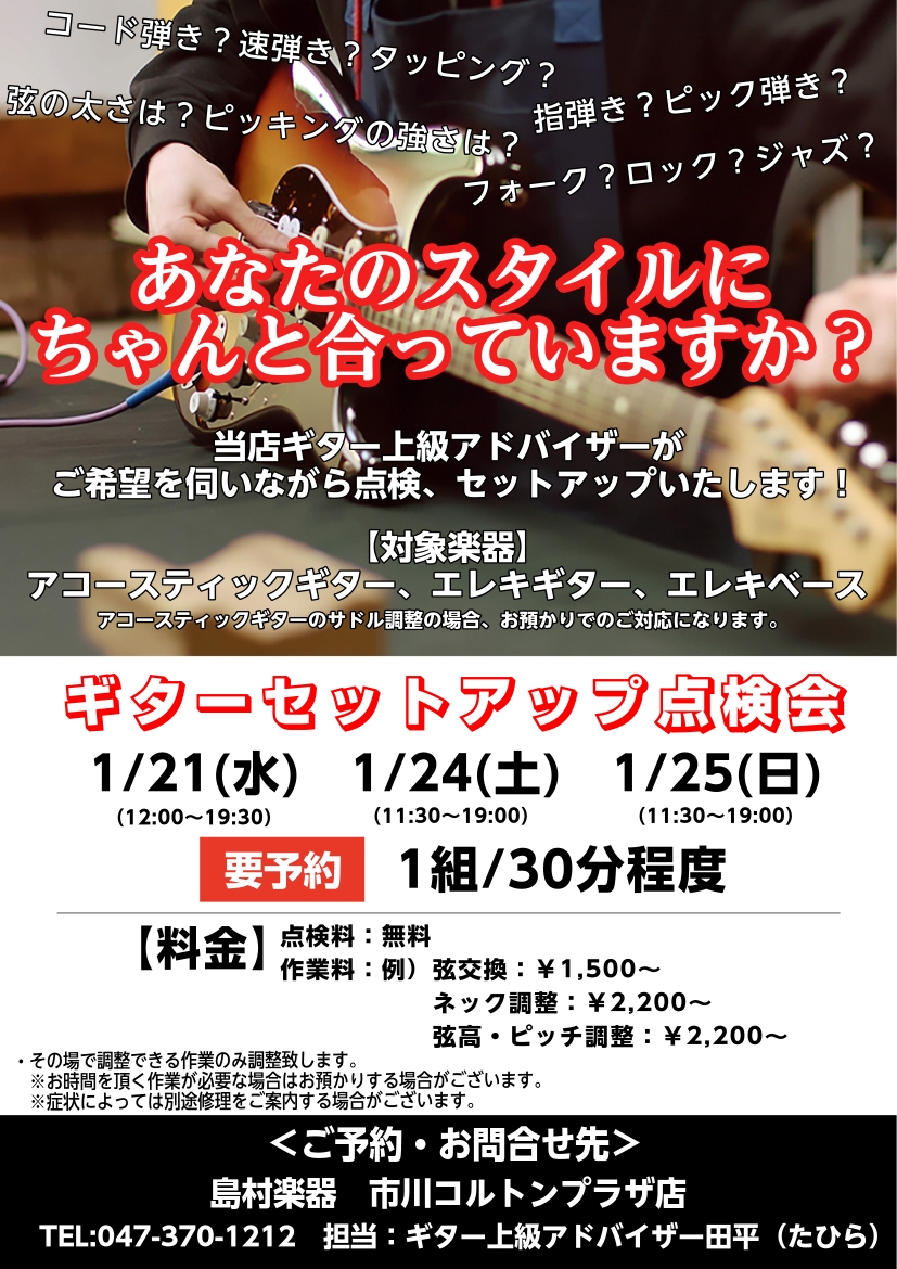 ギター上級アドバイザーによるギターセットアップ調整会開催! 2026/1/21(水) 1/24(土) 1/25(日)