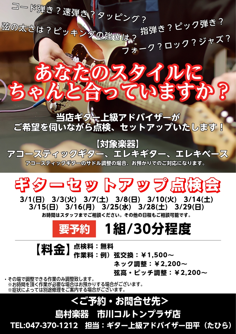 当店ギター上級アドバイザーによるギターセットアップ調整会を開催します!