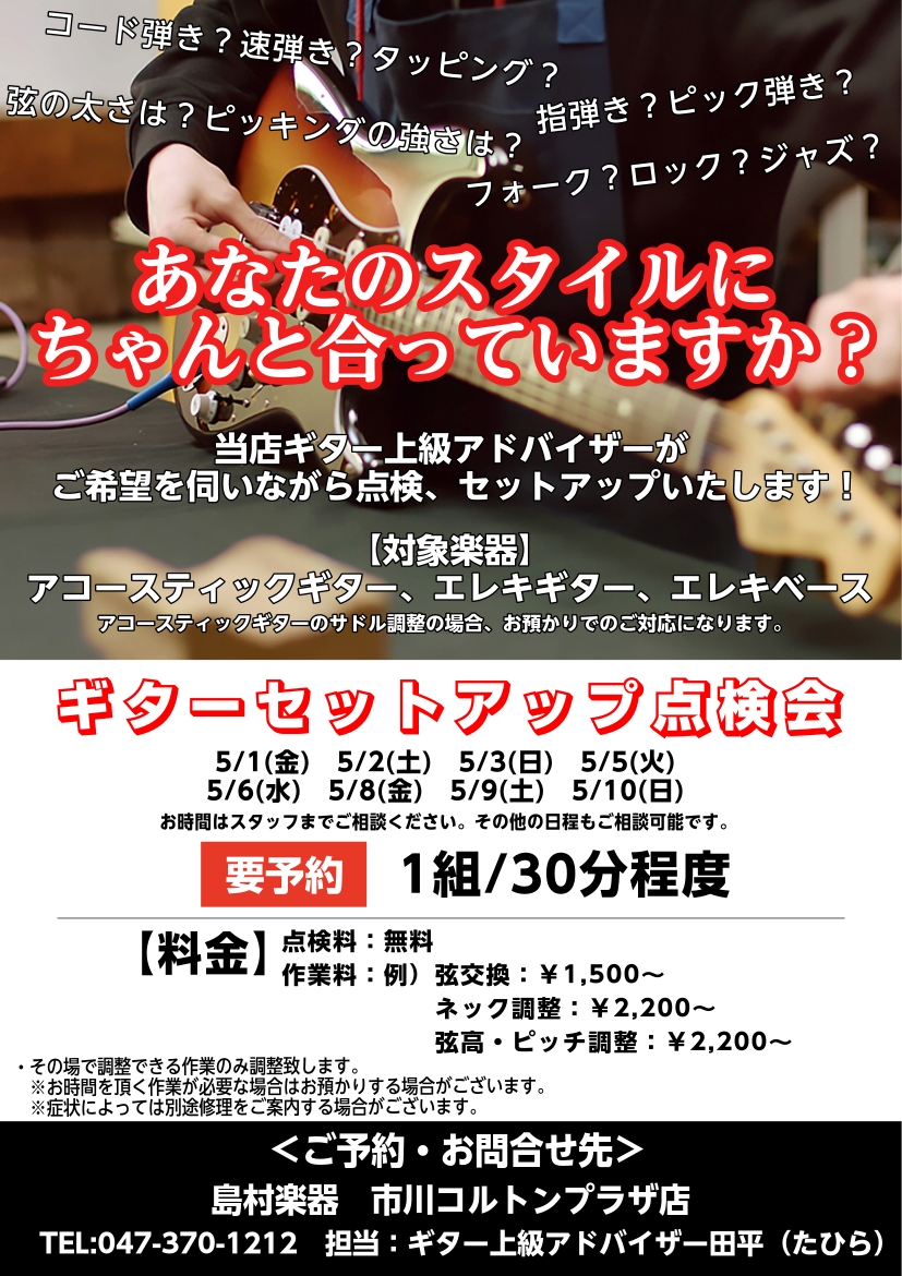 当店ギター上級アドバイザーによるギターセットアップ調整会を開催します!