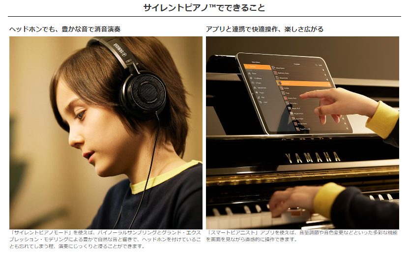 アップライトピアノのタッチ感はそのままに、ヘッドホンでも演奏が可能です!