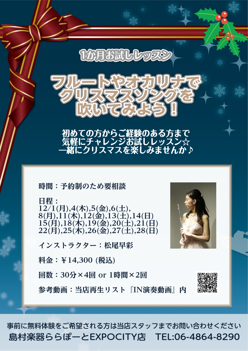 【音楽教室】フルートやオカリナのお試しレッスン☆体験申込受付中♪
