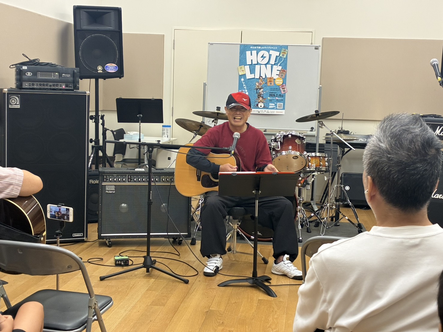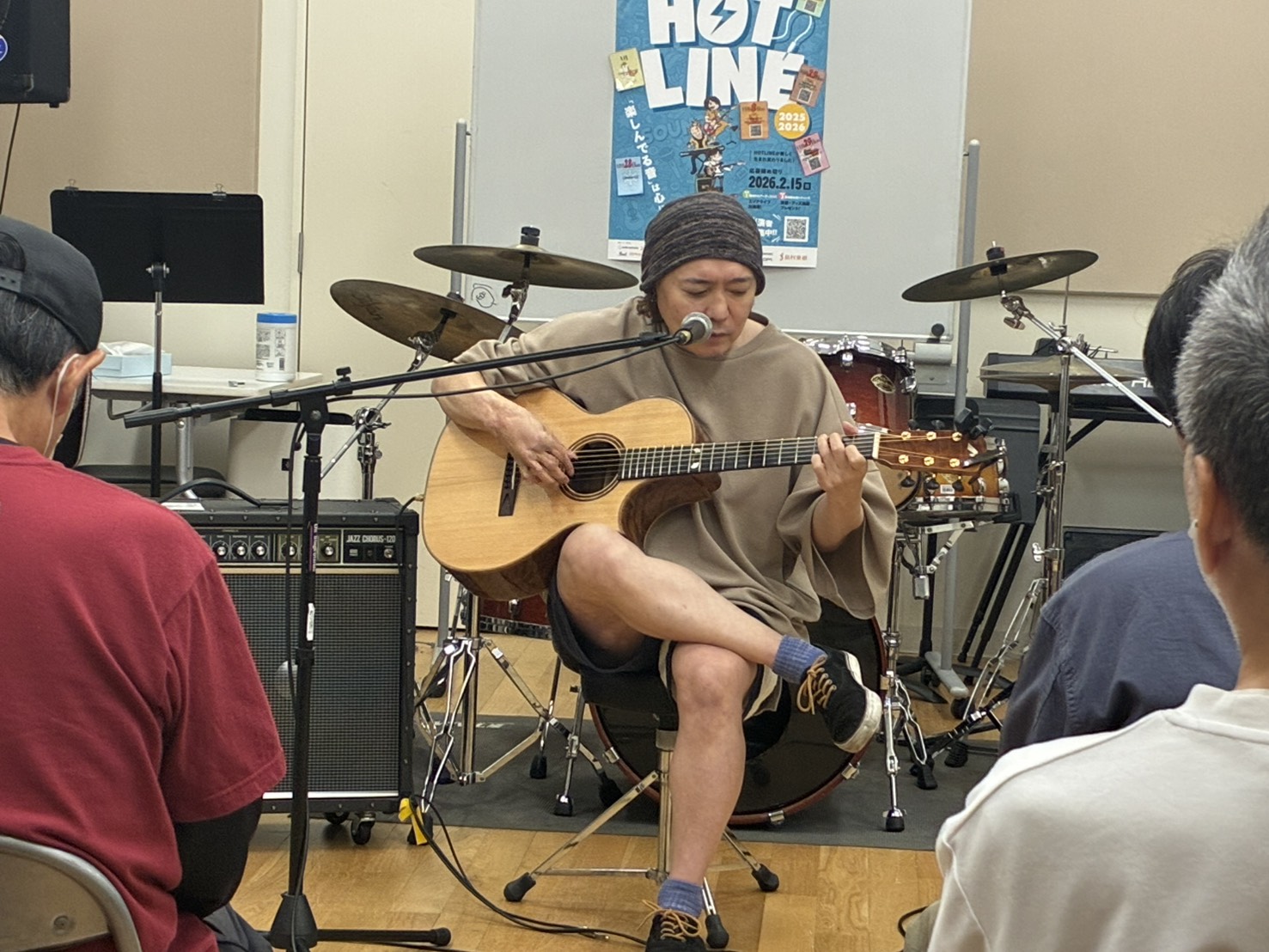 6番手は「たけばたまさみ」さんです。いつも青春フォークサークルに参加いただいてるたけばたさん。今回もフォークソングを3曲演奏してくださいました。さらに今回は口笛を吹いての演奏でとても心地よいフォークソングを堪能できました!