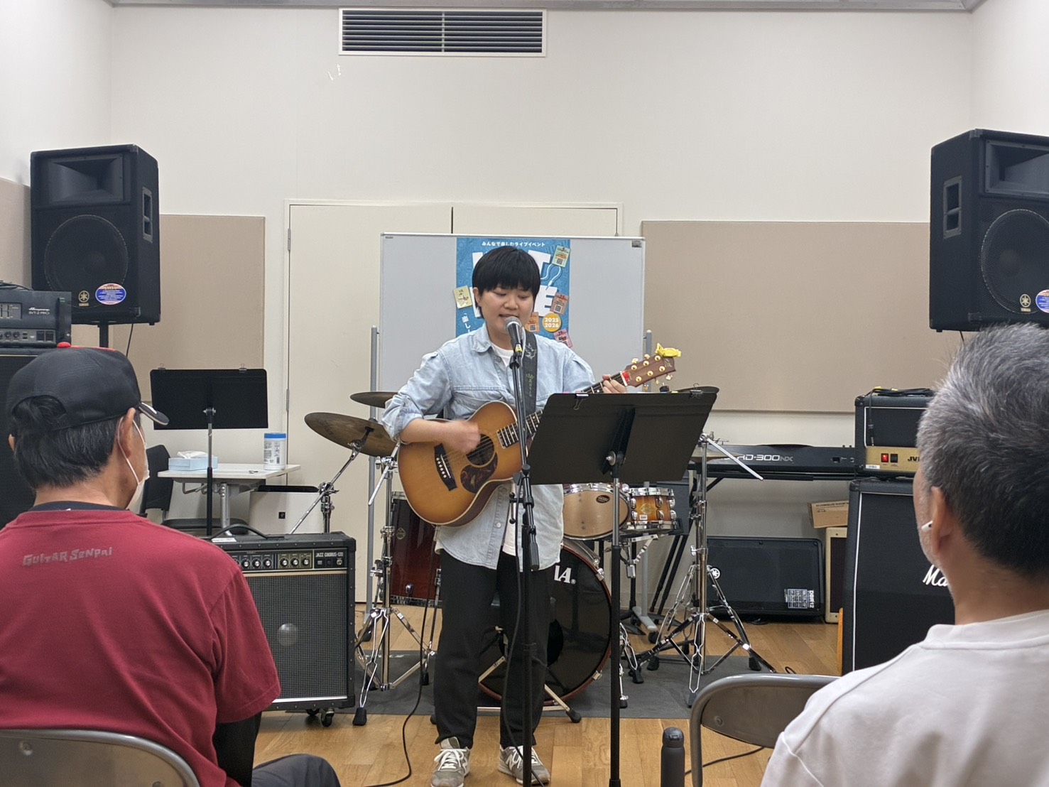 8番目は「Kai」さんです。またまた青春フォーク&ポップスサークルより出演!今回はかぐや姫の「三階建の詩」というアルバムから3曲演奏してくださいました。力強くもどこか繊細な歌声は毎度感動しております。
