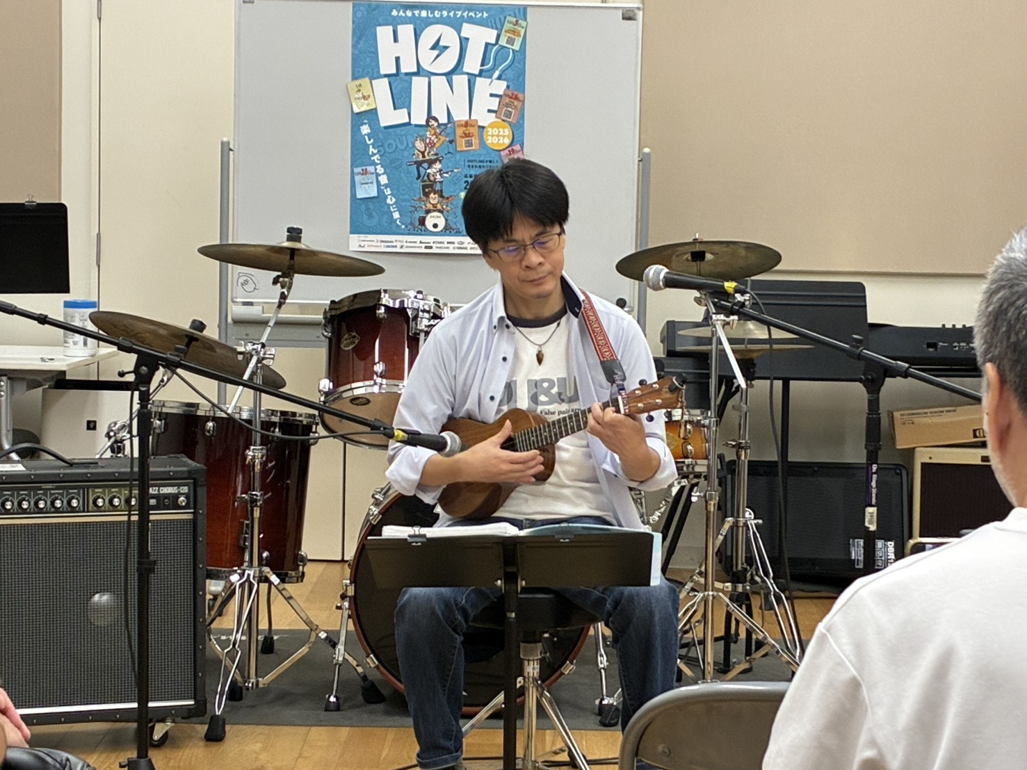 最後は皆さんで大合唱!曲は、ウルフルズの「バンザイ~君を好きでよかった~」を合唱しました。ほぼアドリブだったにも関わらず皆さんで一緒に演奏でき、本日の締めにふさわしい素敵な演奏になりました。